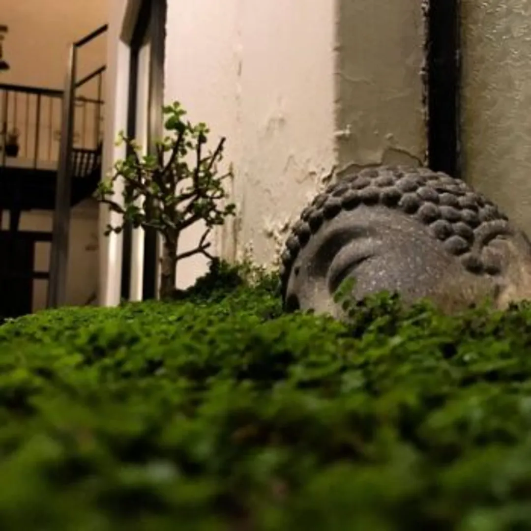 Есть что-то поэтическое в создании скрытого алькова для медитации, куда никто не догадается заглянуть. А поскольку дзен-садоводство уделяет больше внимания сухому ландшафту, а не пышной растительности, вам не придется беспокоиться о недостатке освещения или полива.