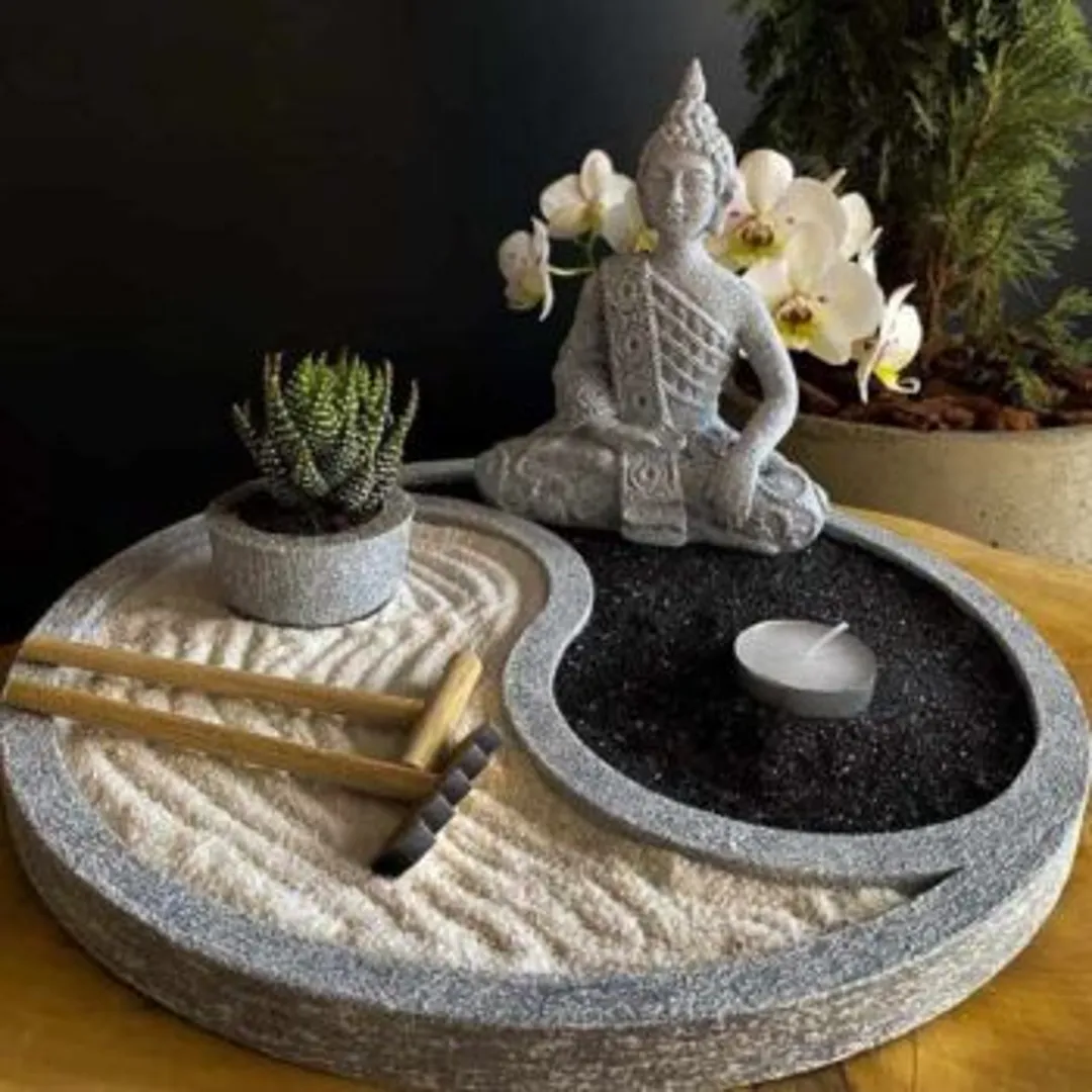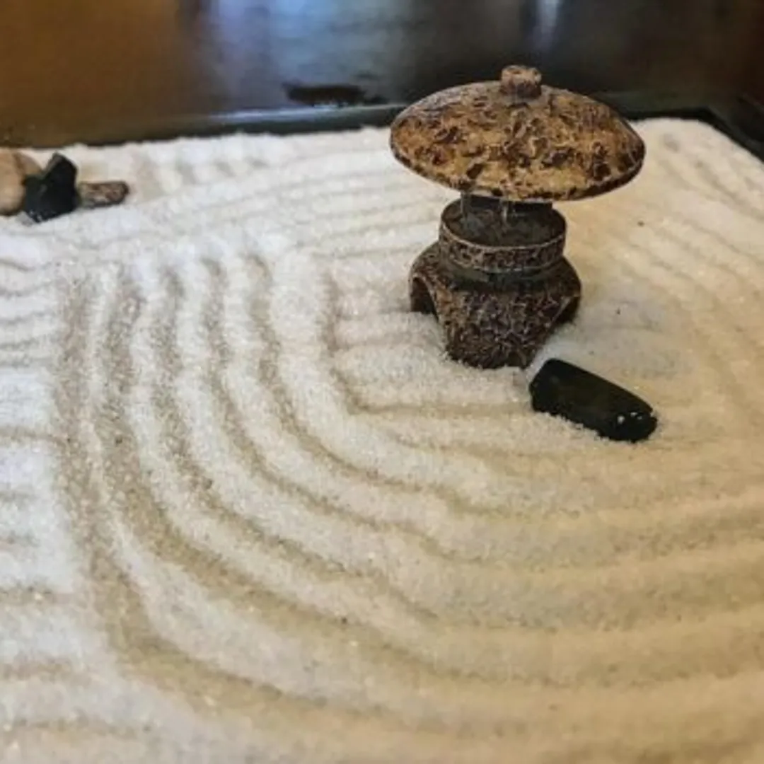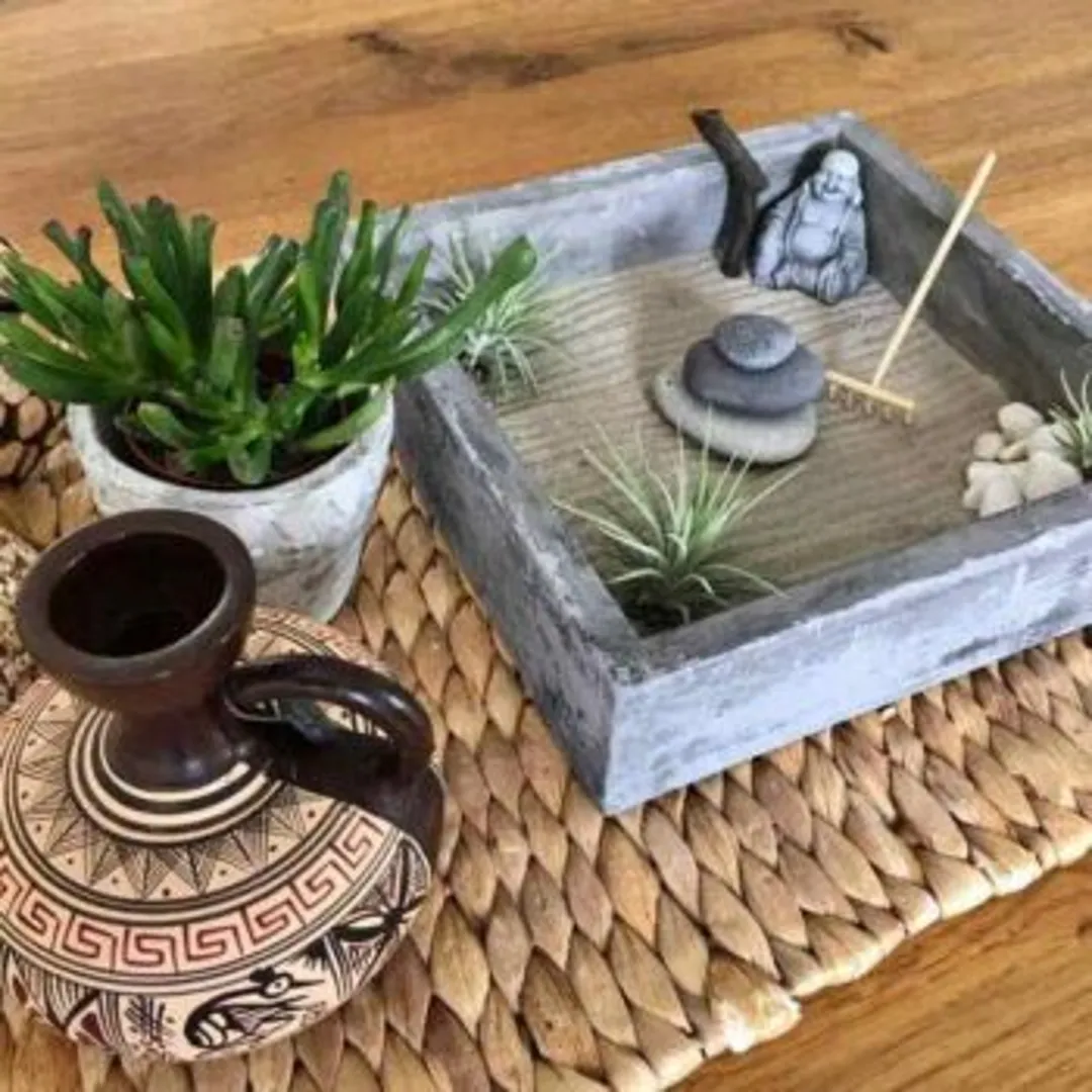 Для миниатюрного дзен-сада, как и для того, что расположен на открытом воздухе, растения не обязательны. Оформления песком, гравием, камнями может быть достаточно. Используйте в своем самодельном саду статуэтки или растения-эпифиты, чтобы обеспечить себя идеальным местом для уединения.