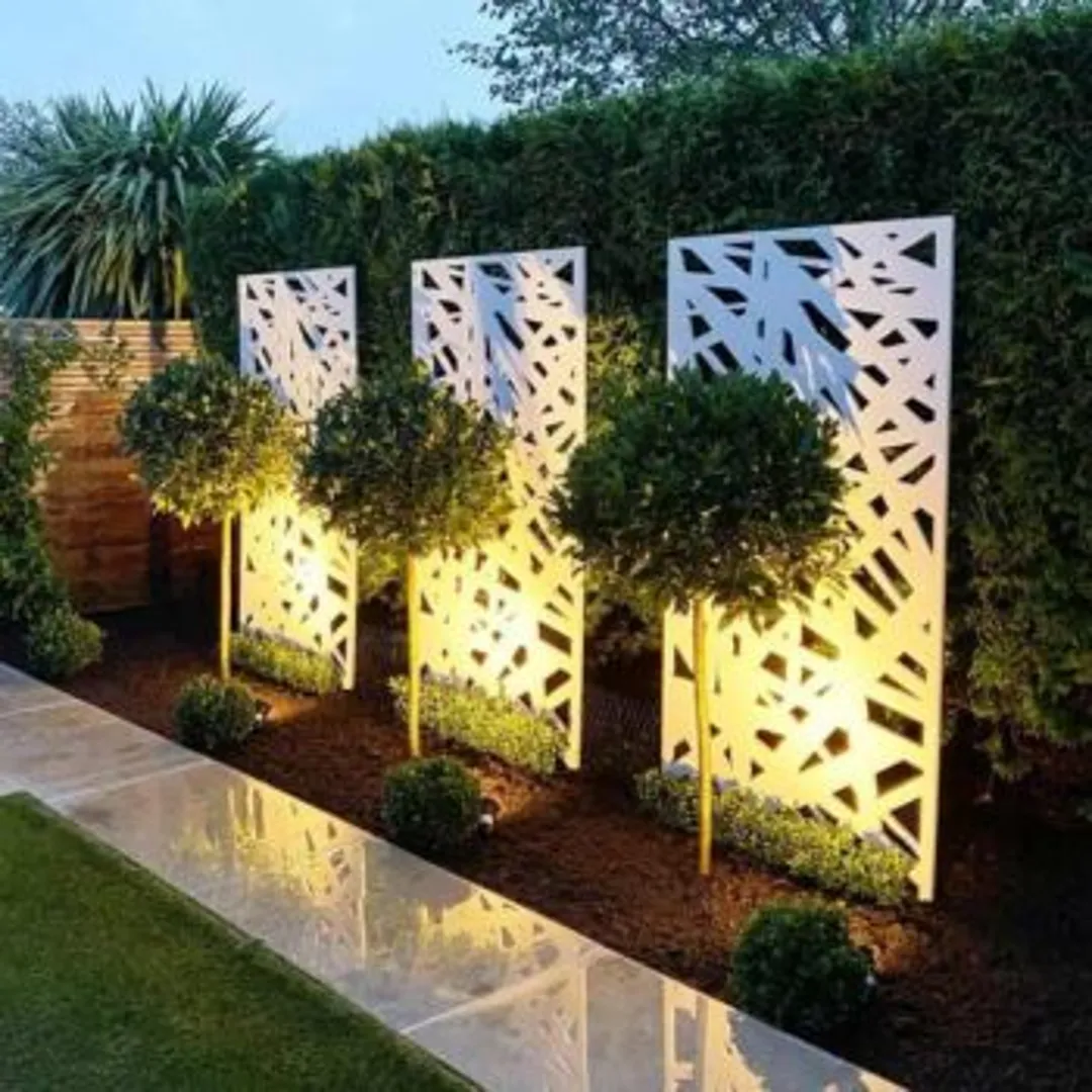Если у вас есть забор, окружающий ваш сад, это отличный шанс добавить чуть больше оформления. Вы можете заказать декоративные кованые элементы, сочетающиеся с деревом, или альтернативные металлические и деревянные панели для элегантного и современного садового забора.