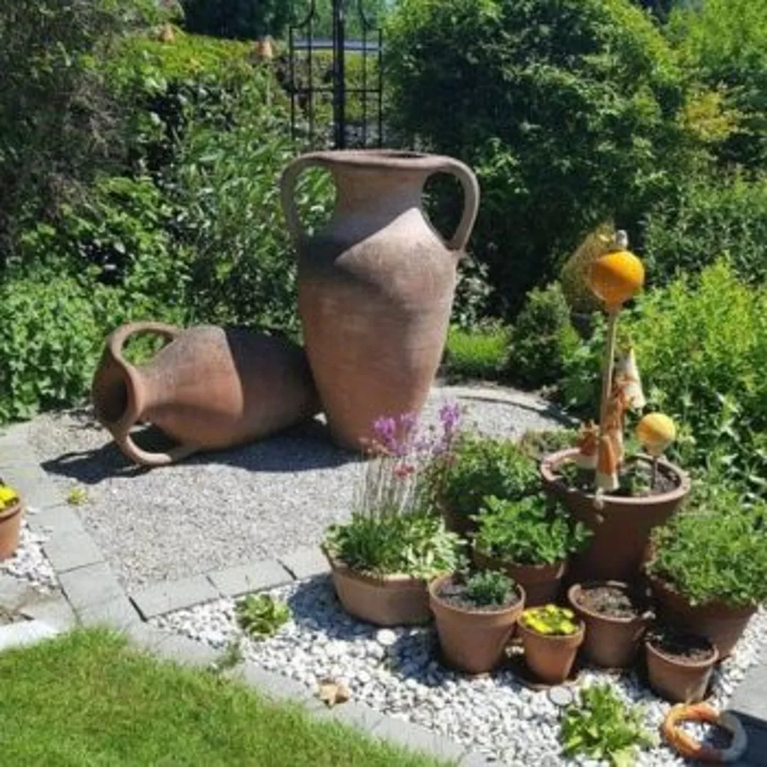 Необязательно сажать все растения в землю. Вы можете создать визуальный интерес в своем саду, посадив некоторые из них в декоративные горшки. Использование терракотовых горшков придаст вашему саду традиционный вид. Насыщенный цвет терракоты красивый, деревенский и теплый.