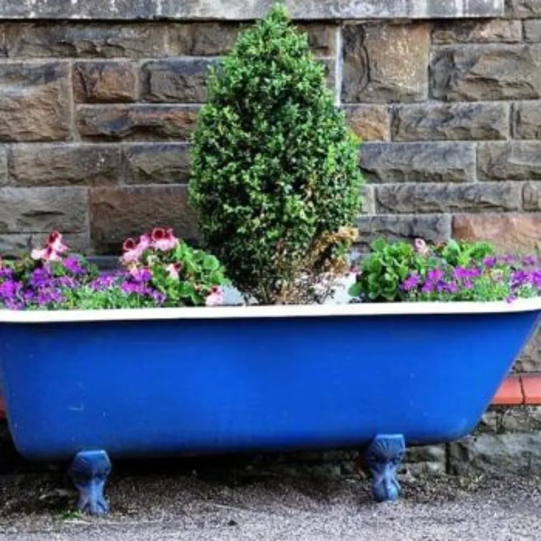 Не бойтесь проявлять творческий подход к своим подставкам для растений. Используйте разрезанные пополам бочки из-под вина, бурбона или виски. Или как насчет старой ванны на ножках, засыпанную землей? Вы даже можете найти металлические подставки, выглядящие как предметы повседневного обихода, но в них есть встроенные держатели для ваших горшков. Какую бы кашпо или горшок вы ни выбрали, ищите те, которые помогут вам увеличить высоту вашего сада, для создания разных уровней.
