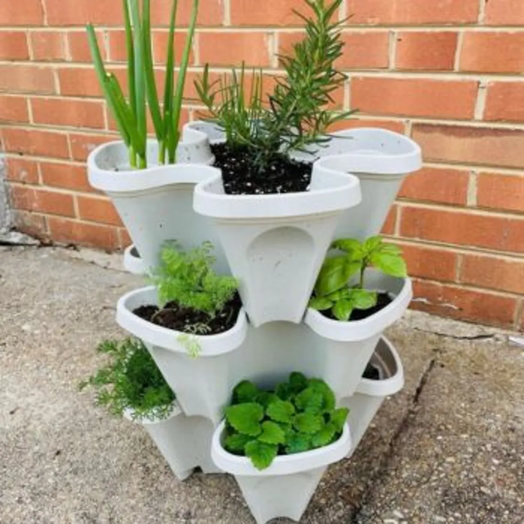 Что касается того, что можно использовать в вертикальной системе, вариантов здесь множество. Многие приспосабливают под контейнерный сад старые столы и полки. Может быть, придется применить водостойкий герметик для придания долговечности деревянным вещам. Для выращивания растений на открытом воздухе можно купить системы особой конструкции для подвешивания и расстановки.