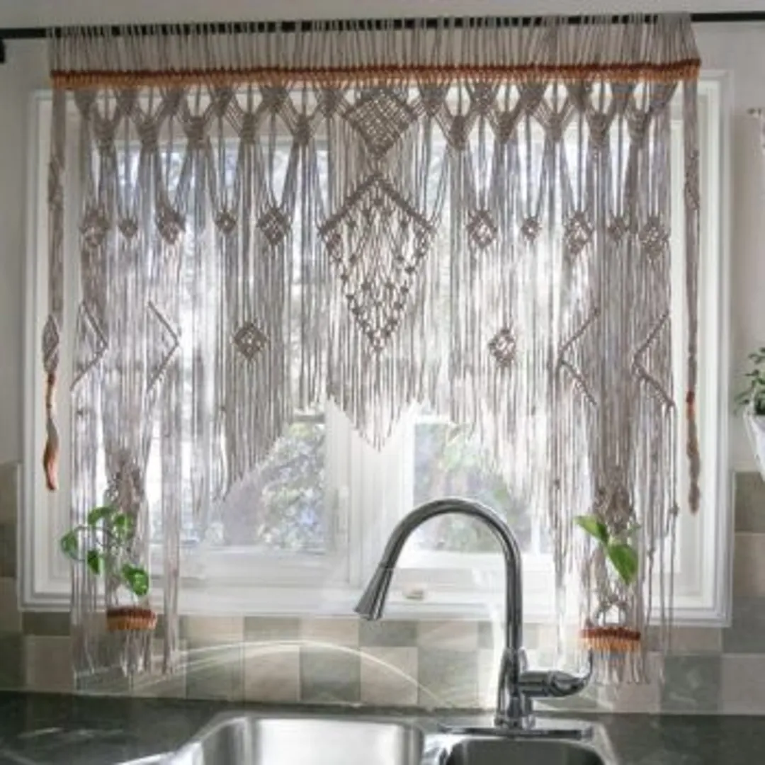 Окна вашей кухни обеспечивают достаточную приватность и прекрасное освещение, но вам все равно кажется, что чего-то не хватает? Панель из макраме способно украсить любое голое оконное стекло, не загораживая свет и вид.