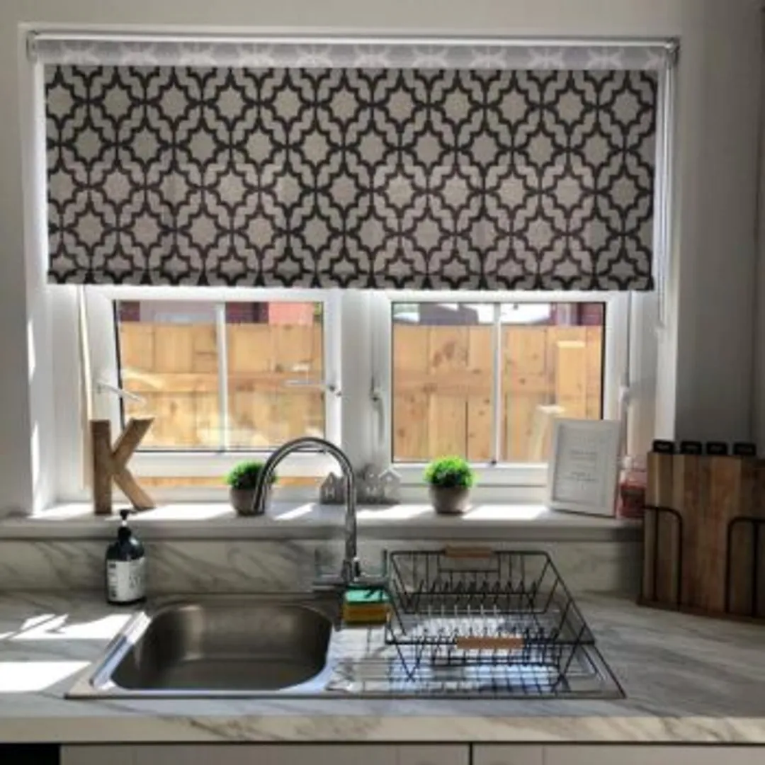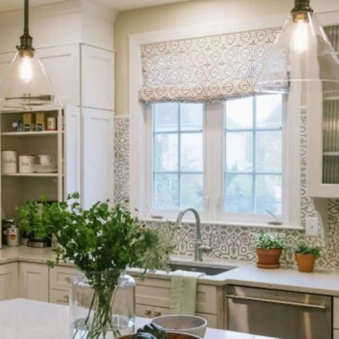 Для более смелого заявления ищите рулонные шторы из ткани с рисунком или с трафаретным изображением. Если вы не можете найти идеальное изображение для вашей кухни, закажите печать на заказ.