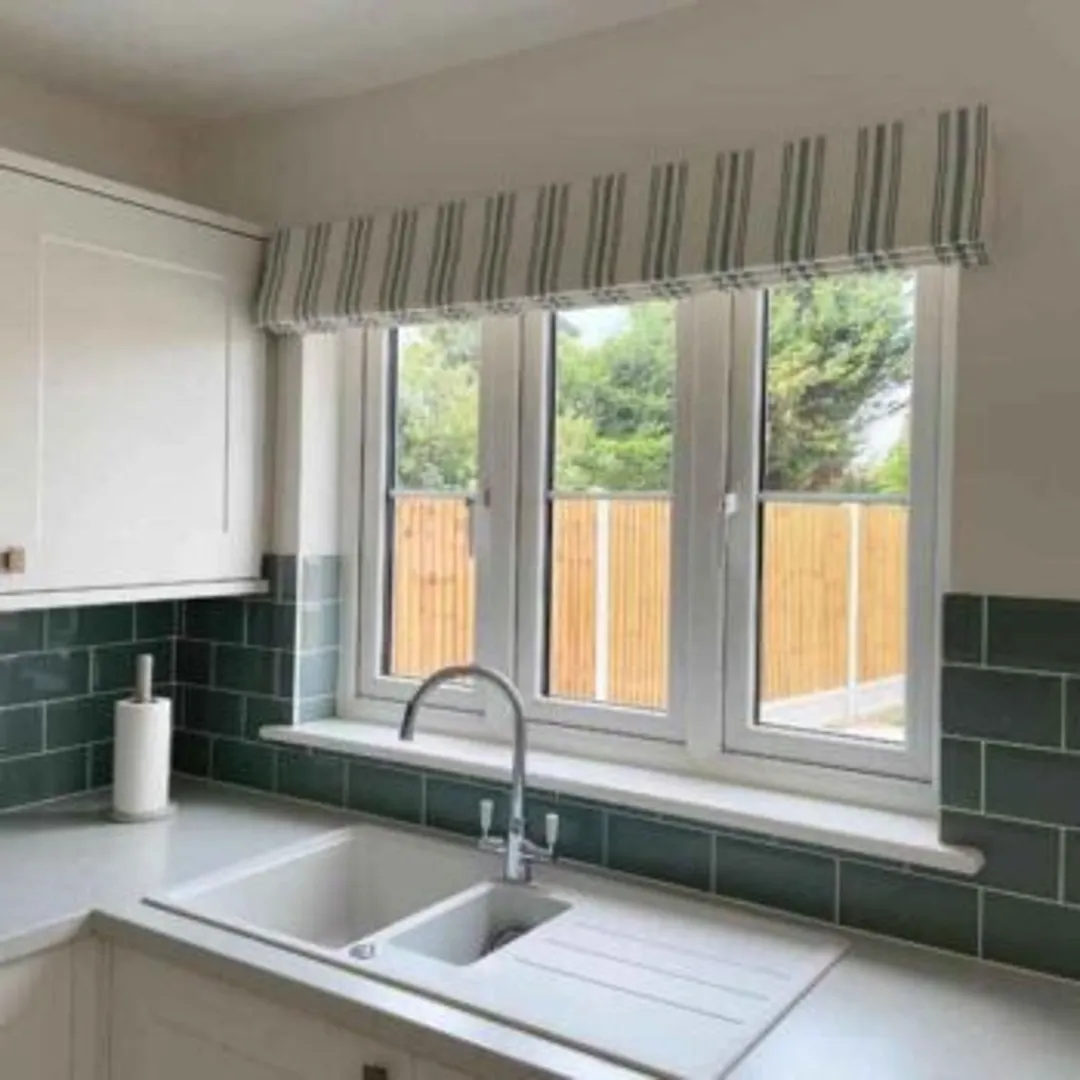 Узорчатые шторы способны выглядеть перегруженными, в дизайне кухни с большим количеством другого интерьера. Полоски – это изящный вариант для тех, кто ищет компромисс между обычными и декоративными кухонными шторами.