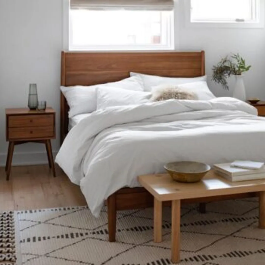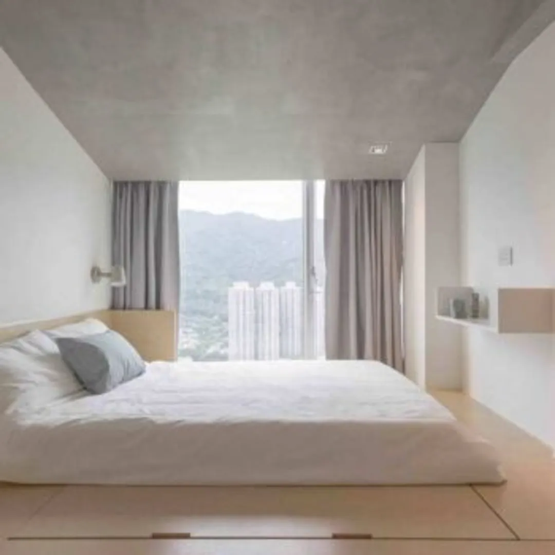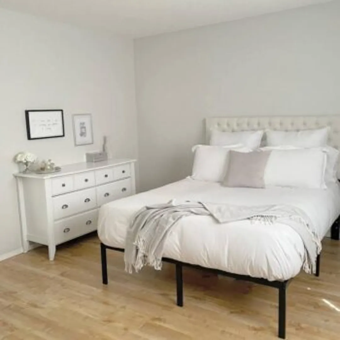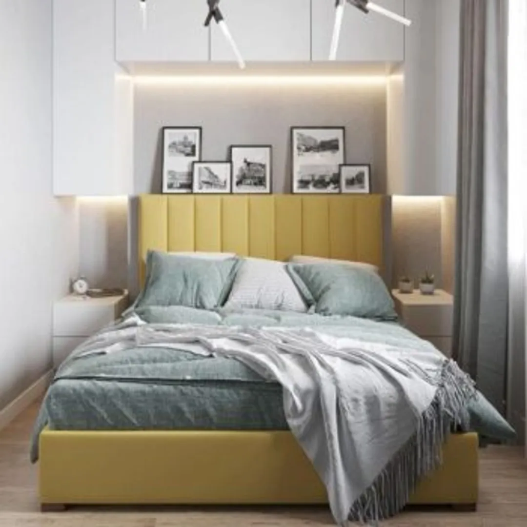 Начните с выбора невысокой кровати без громоздкого каркаса. Вы даже можете выбрать кровать на платформе, а затем сделать искусственное изголовье на стене над ней самостоятельно. Решите, как можно добавить в комнату пару растений для ощущения свежести и внесения естественного цвета.