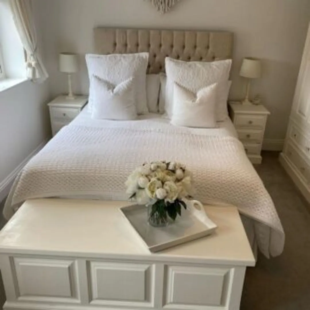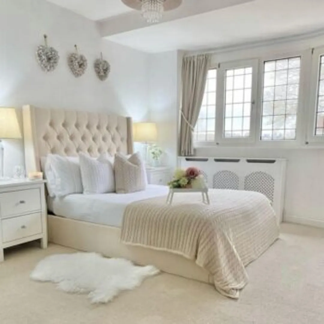Полностью белая спальня создает чистую палитру. Белый цвет может быть четким и чистым, что для некоторых является успокаивающим. Для других белый цвет кажется строгим и холодным. От того, как вы оформите свою спальню, зависит, станет ли она комфортной или холодной.