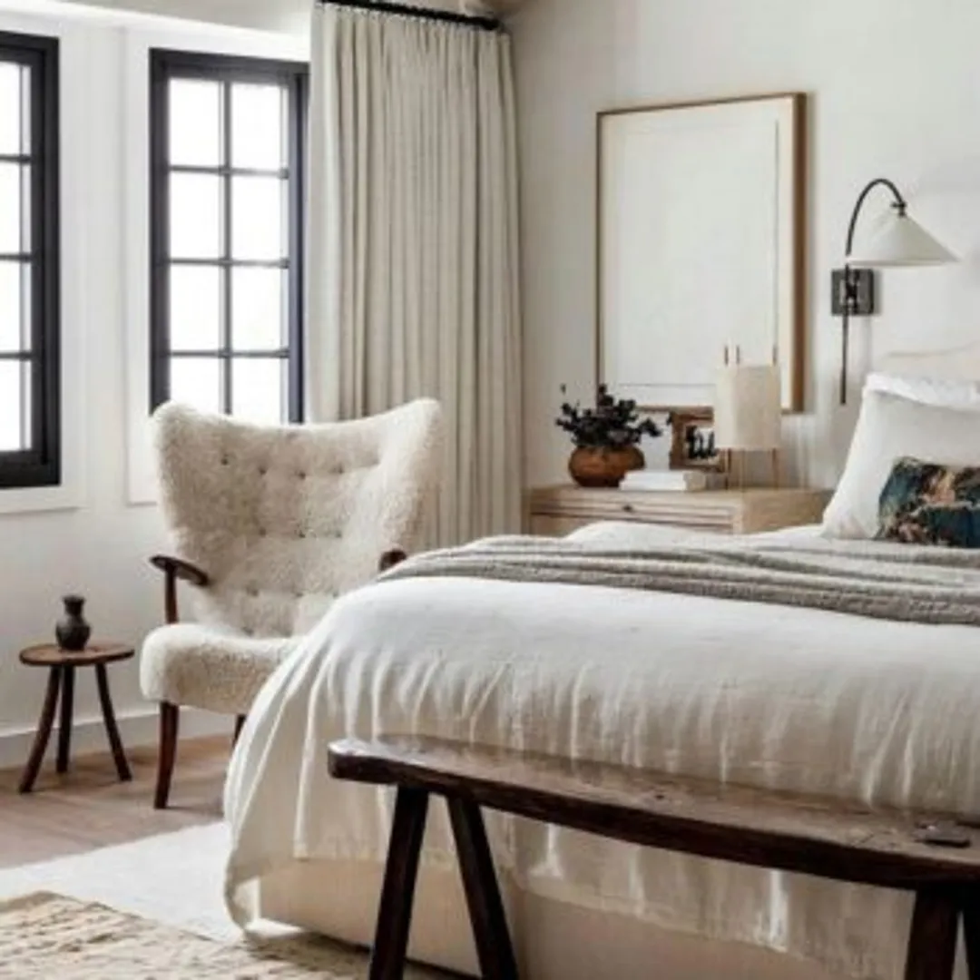 Вы узнаете, как накладывать слои тканей для создания плюшевой кровати с постельным бельем, кажущимся на ощупь очень мягким. Вы также узнаете, как смена мебели поможет превратить вашу белую спальню из ультрасовременной в скандинавскую или даже в деревенскую и в стиле кантри.