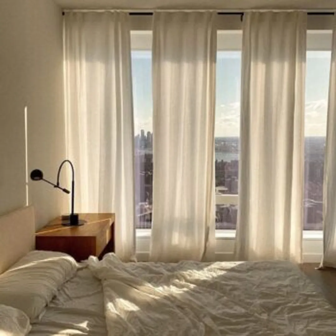 Повесьте на окна шторы с плотным плетением. Хотя белая ткань и пропускает свет, плотное плетение поможет избежать резких бликов.