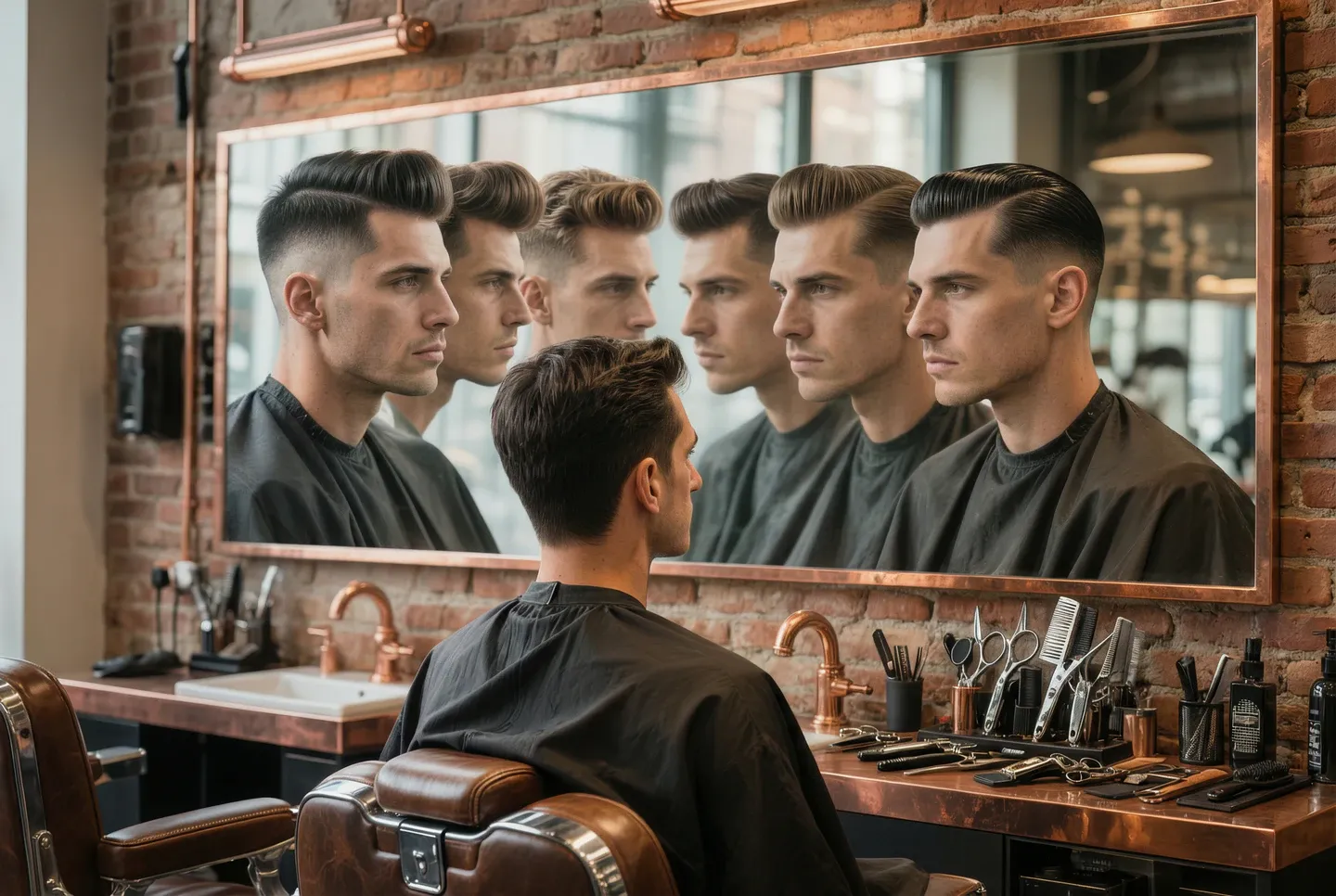 - Говорите с барбером на языке формы, а не только названия.Покажите 2–3 фото, скажите: “Вот длина сверху, вот — по бокам, вот сколько времени я готов тратить по утрам” — и попросите адаптировать стрижку под вашу густоту и образ.