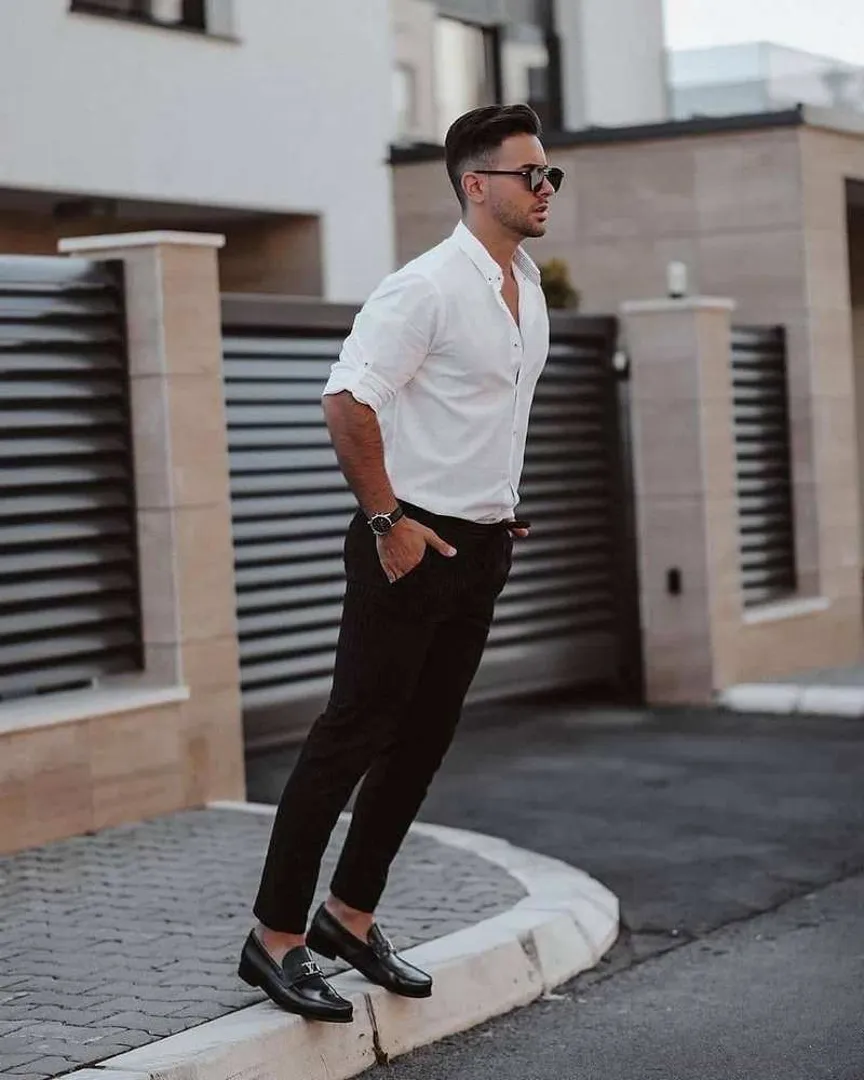 Чтобы образ не был слишком повседневным, сочетайте поло с коротким рукавом или рубашку на пуговицах с приталенными брюками и кожаными мокасинами с патиной, сшитыми на заказ. Впрочем, если вы ищете повседневный образ, то вам подойдёт расстёгнутая рубашка с принтом, сочетающаяся с джинсами цвета шамбрэ или белыми джинсами и классическими белыми кроссовками.