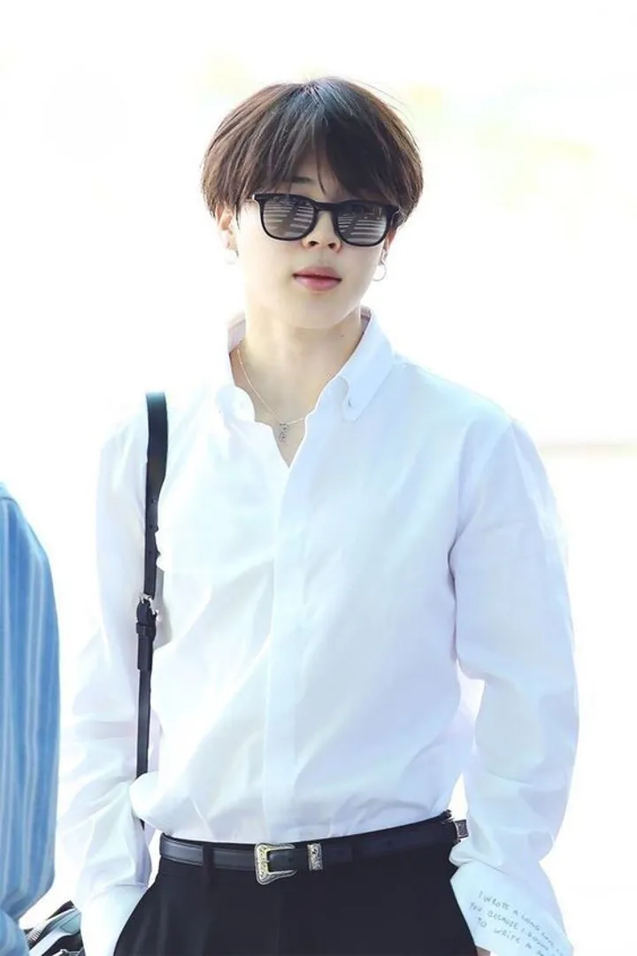 В этом черно-белом образе Чимин выглядит зрелым и уверенным в себе мужчиной. Крой его классической белой рубашки имеет нужную глубину, а прямые рукава придают характер.