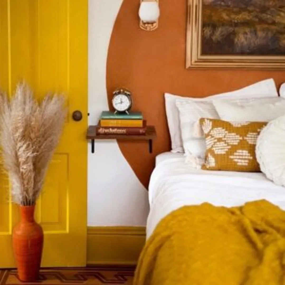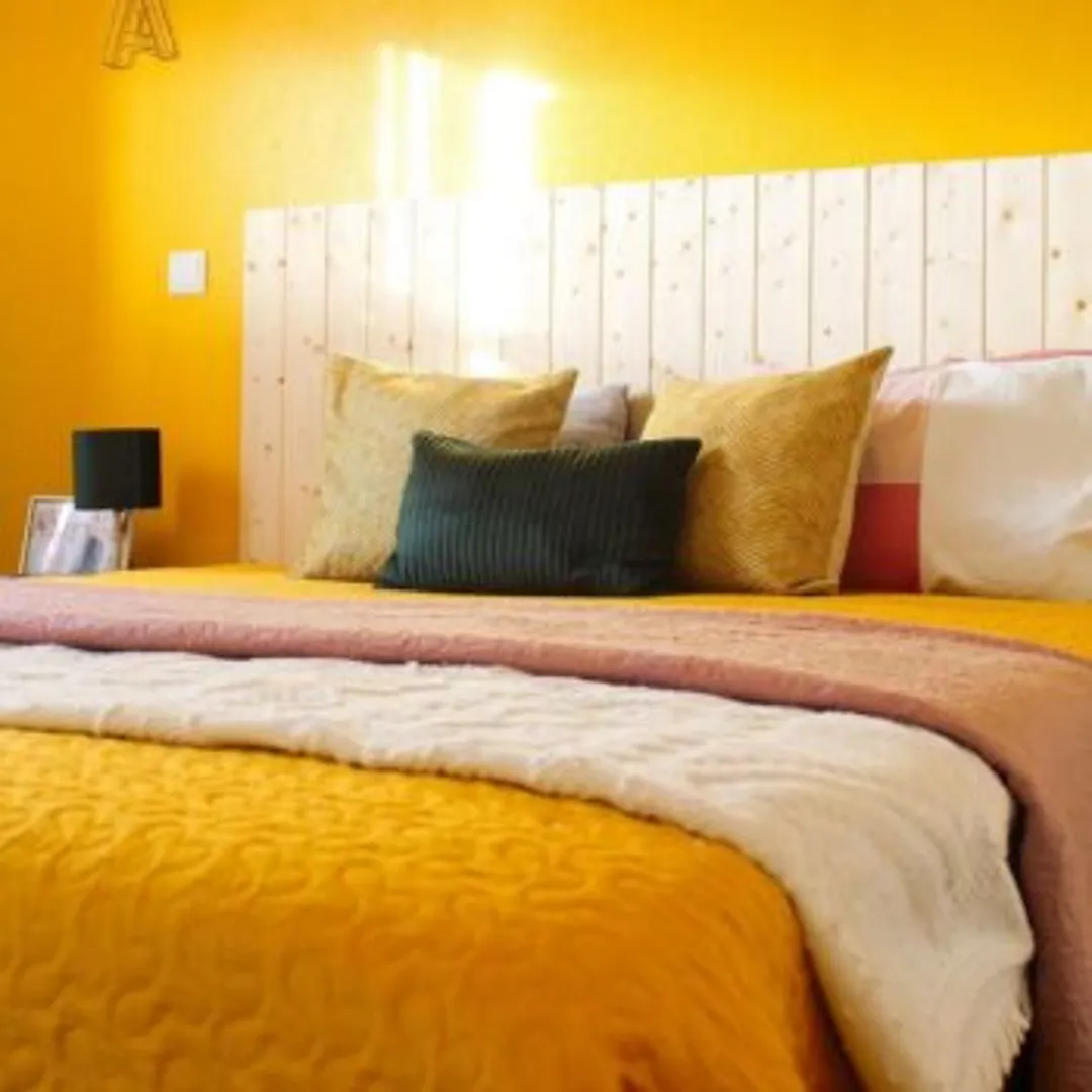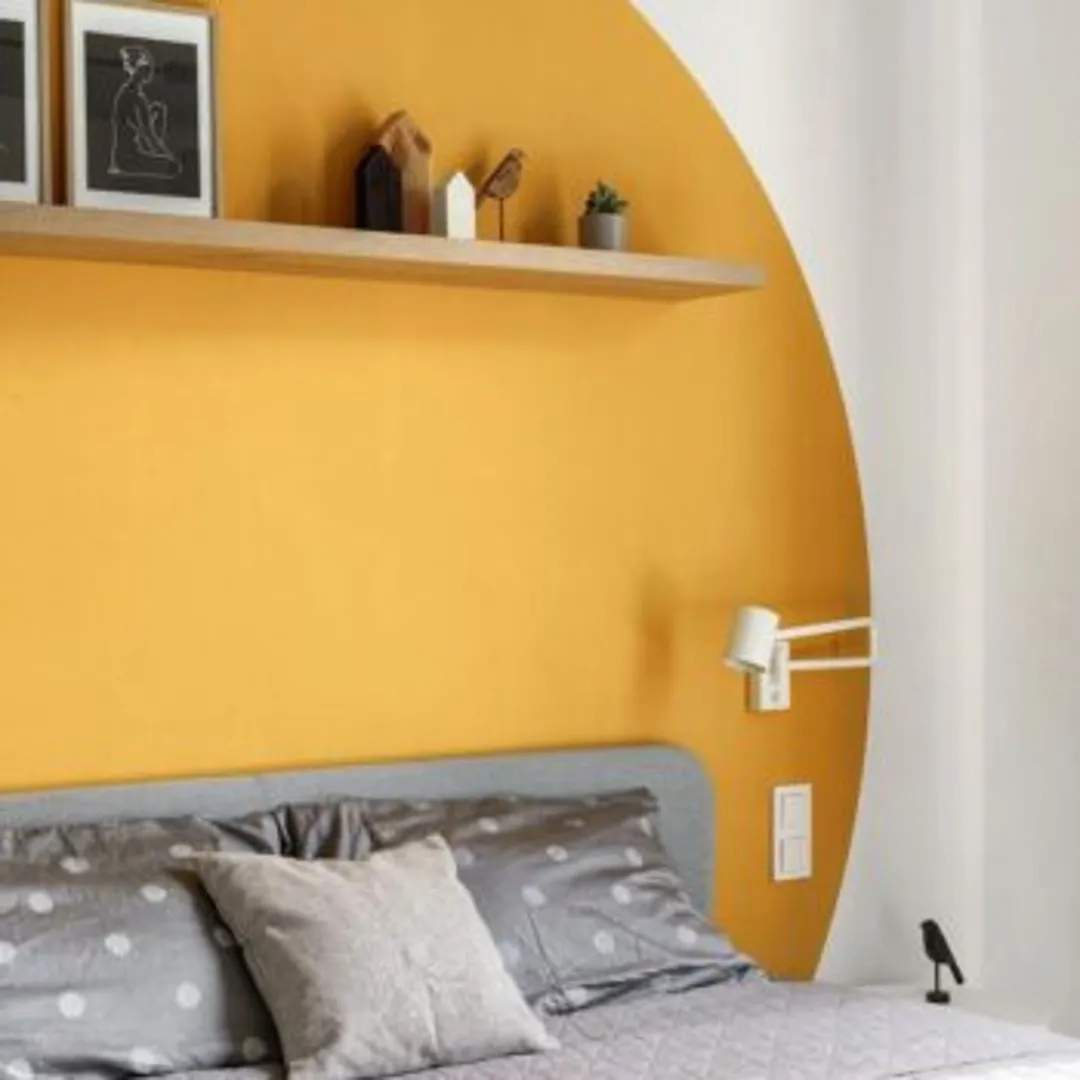Идеи для спальни с желтой акцентной стеной