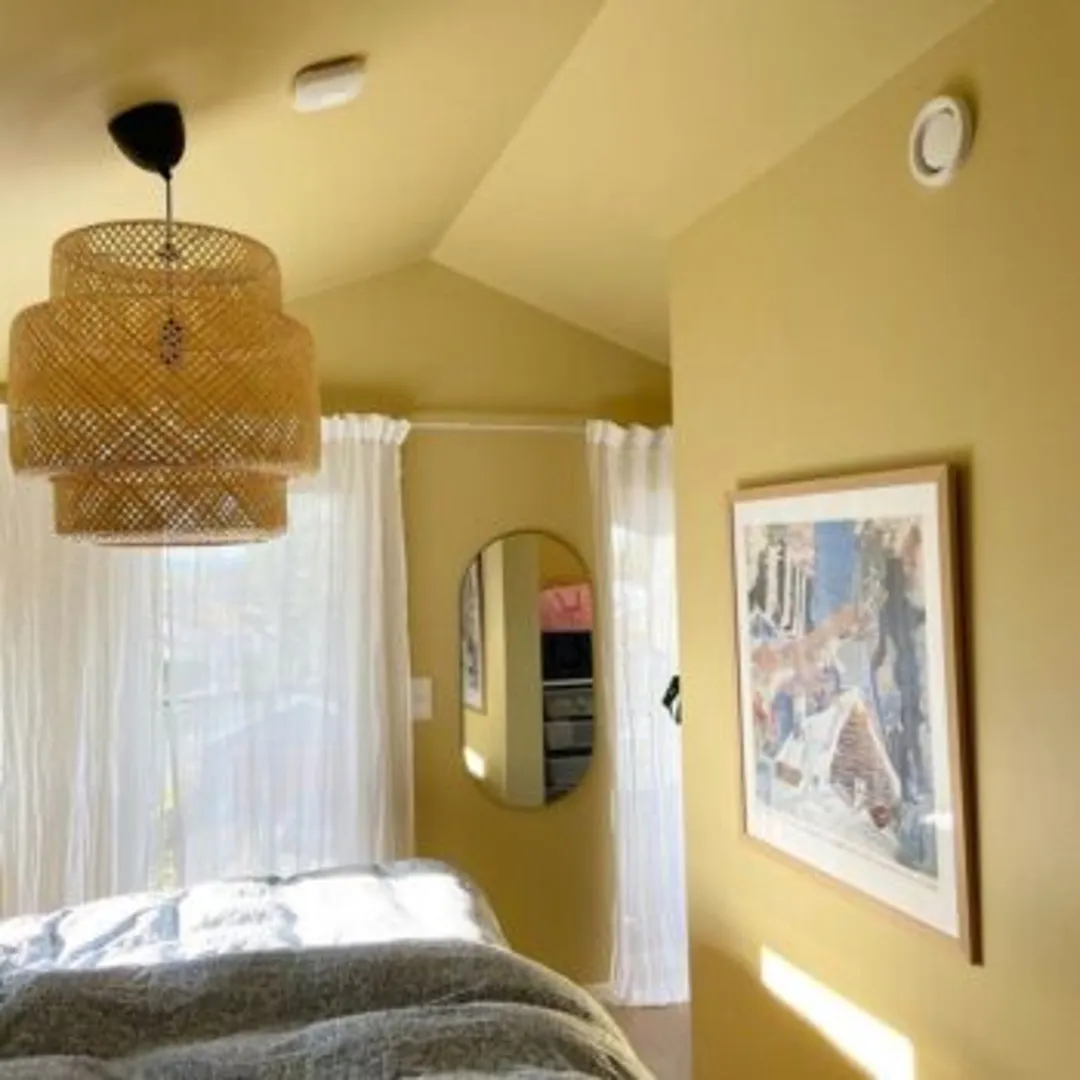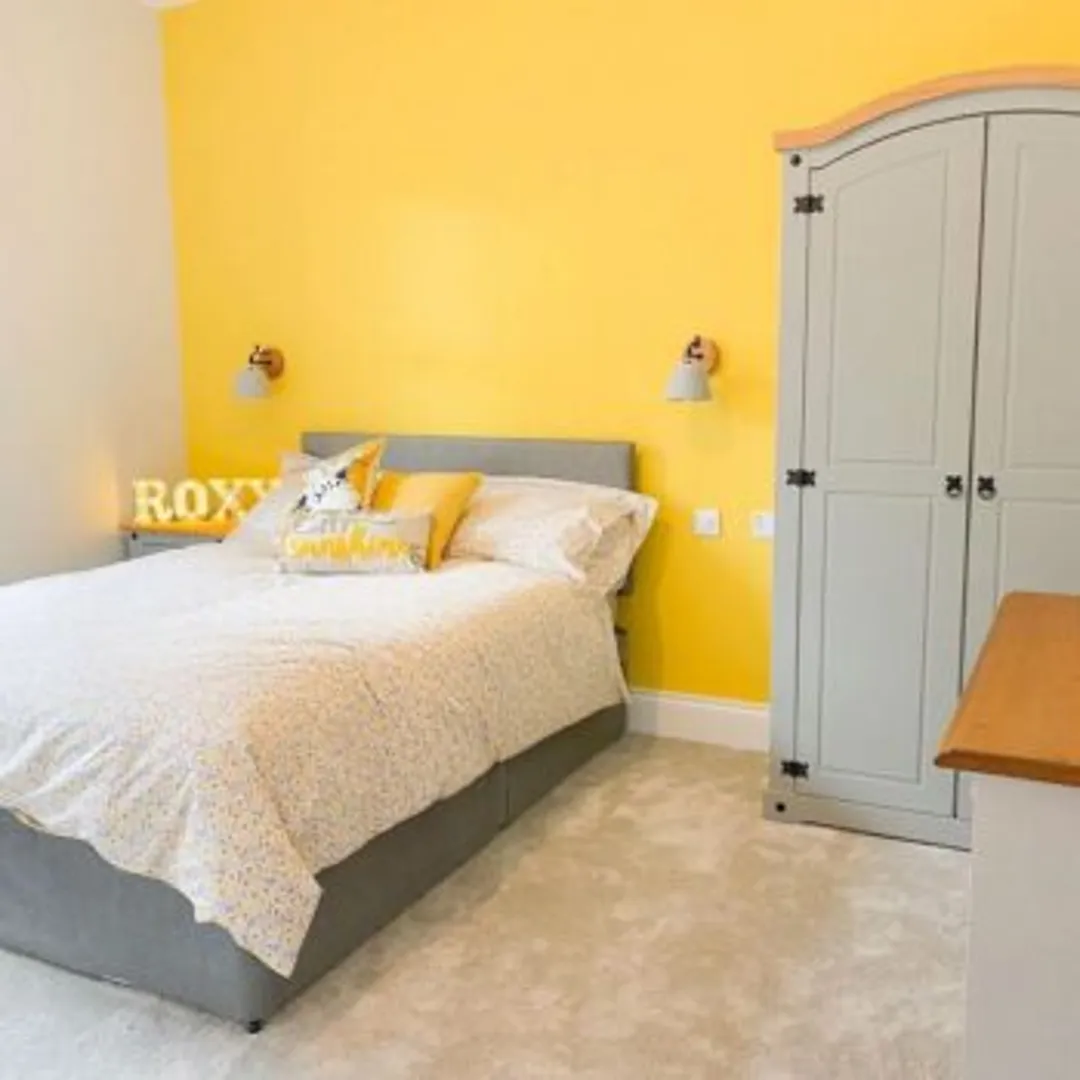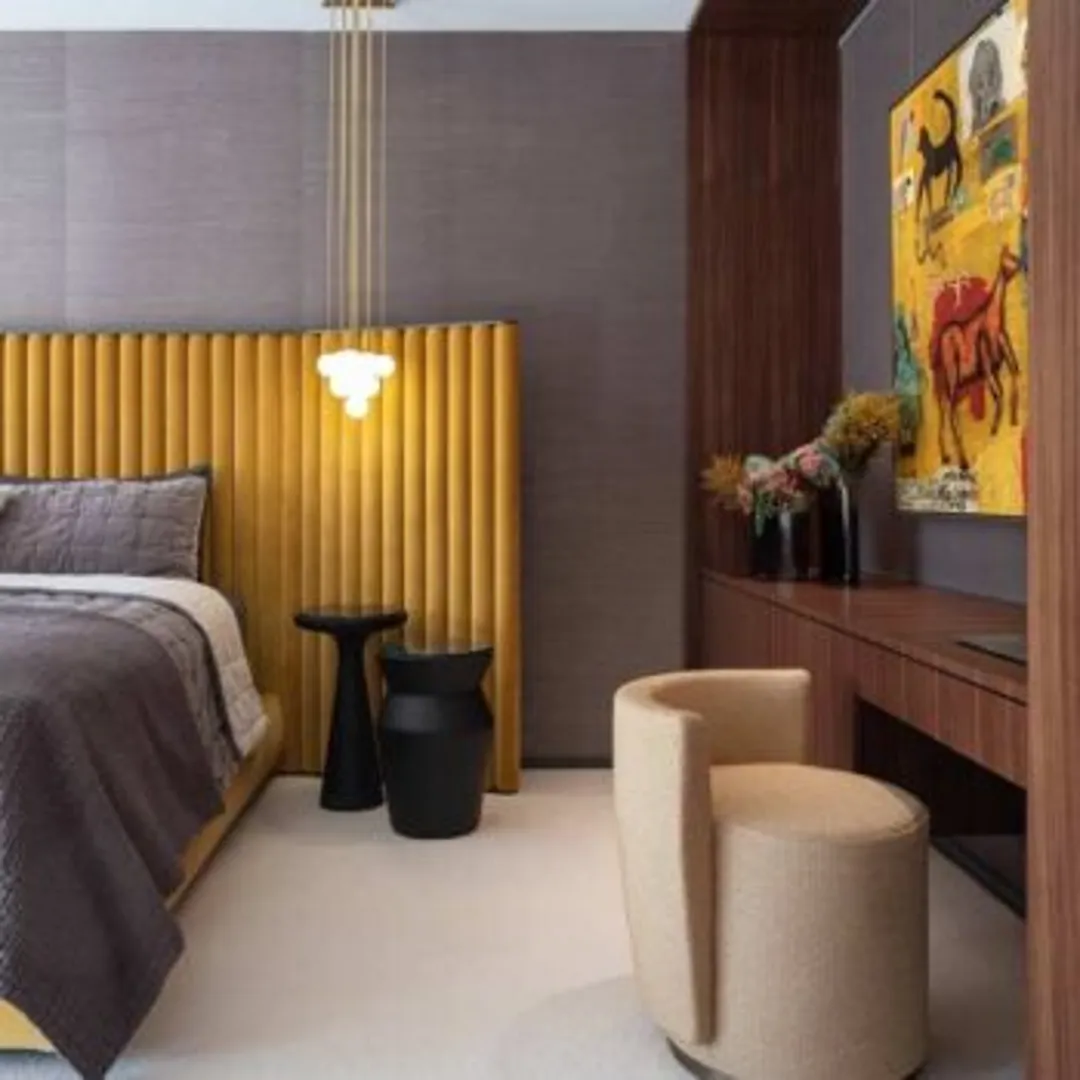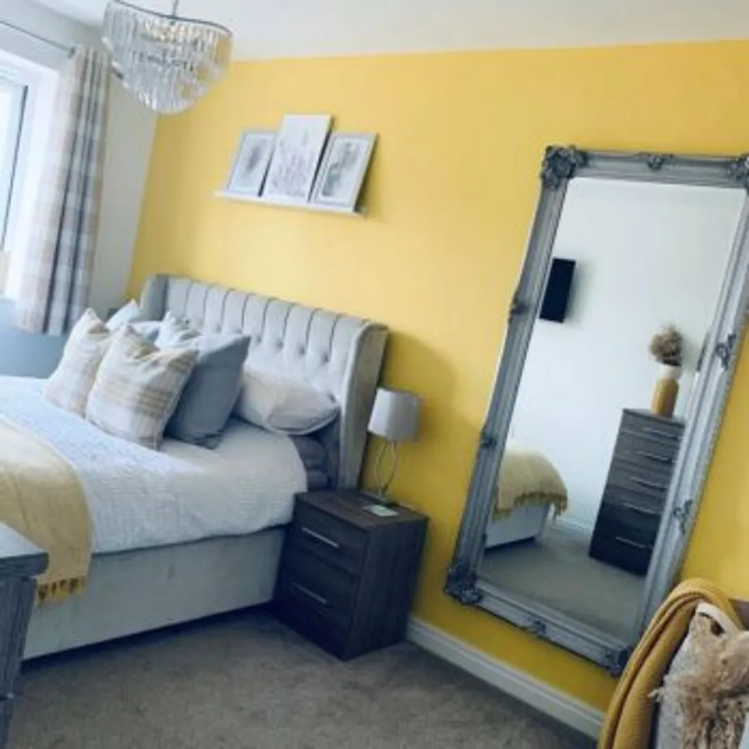 Идеи для спальни с желтой акцентной стеной