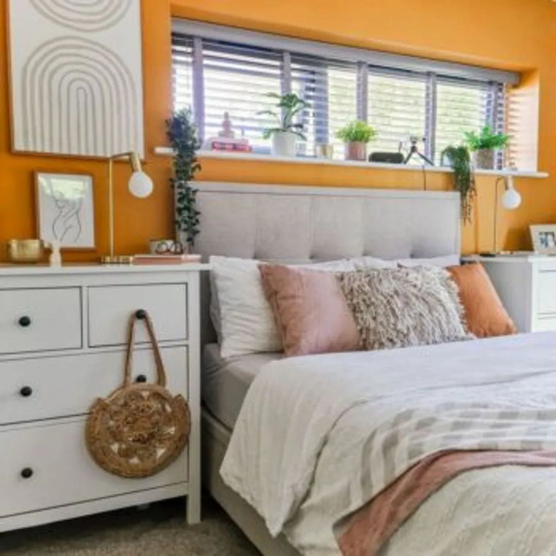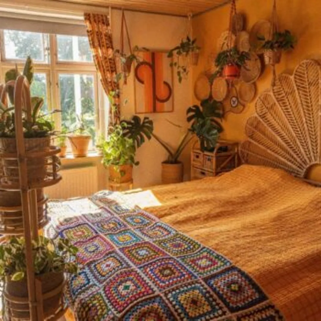 Не секрет, что в стиле Бохо используются яркие и теплые цвета, такие как желтый, оранжевый и красный. Откажитесь от пастельных оттенков и вместо них выберите более темные и насыщенные, такие как медовый, тосканское солнце, горчичный, ирис или канареечный. Они обладают более глубокими темными тонами, которые будут прекрасно смотреться рядом с натуральными материалами, такими как дерево, ротанг и плетеные изделия.
