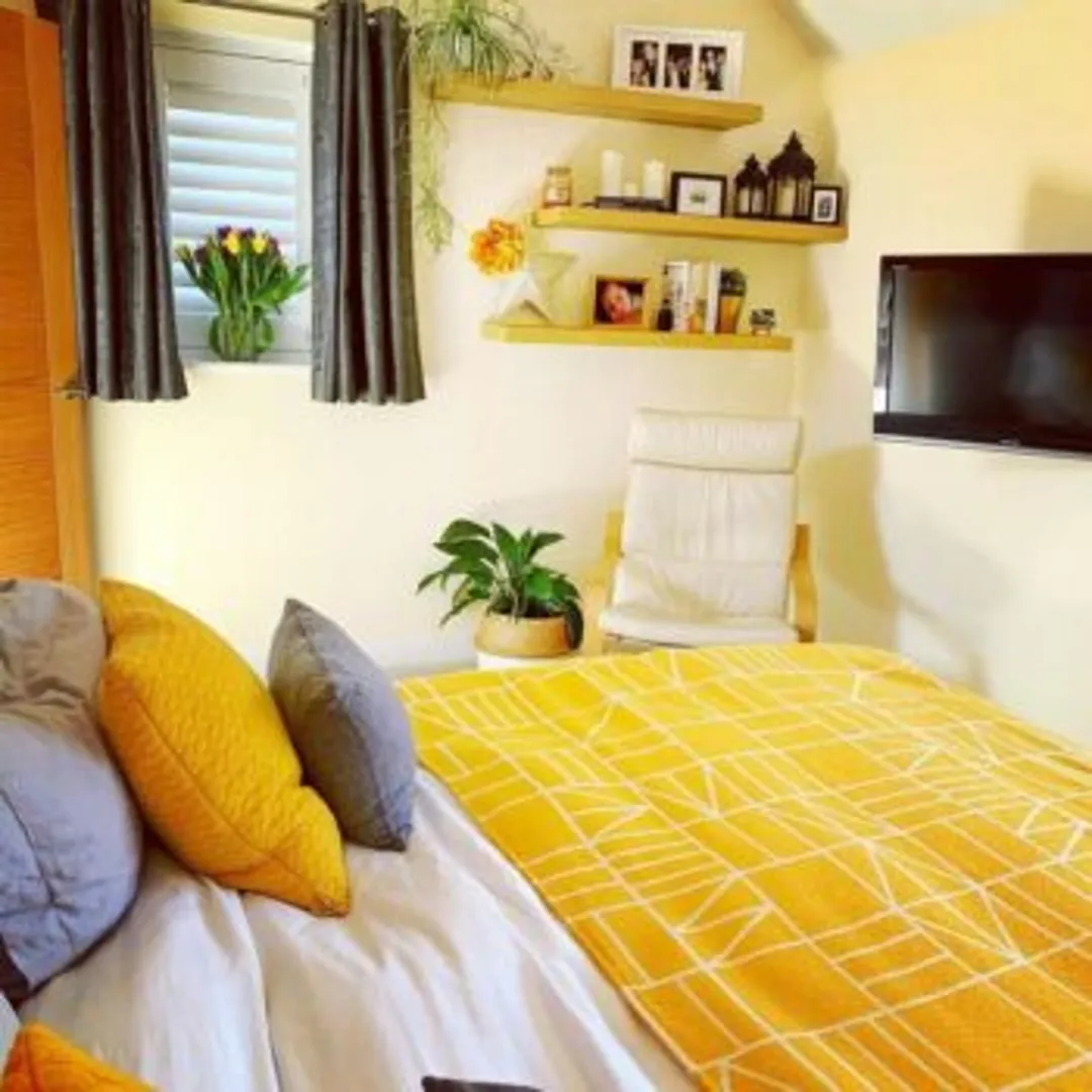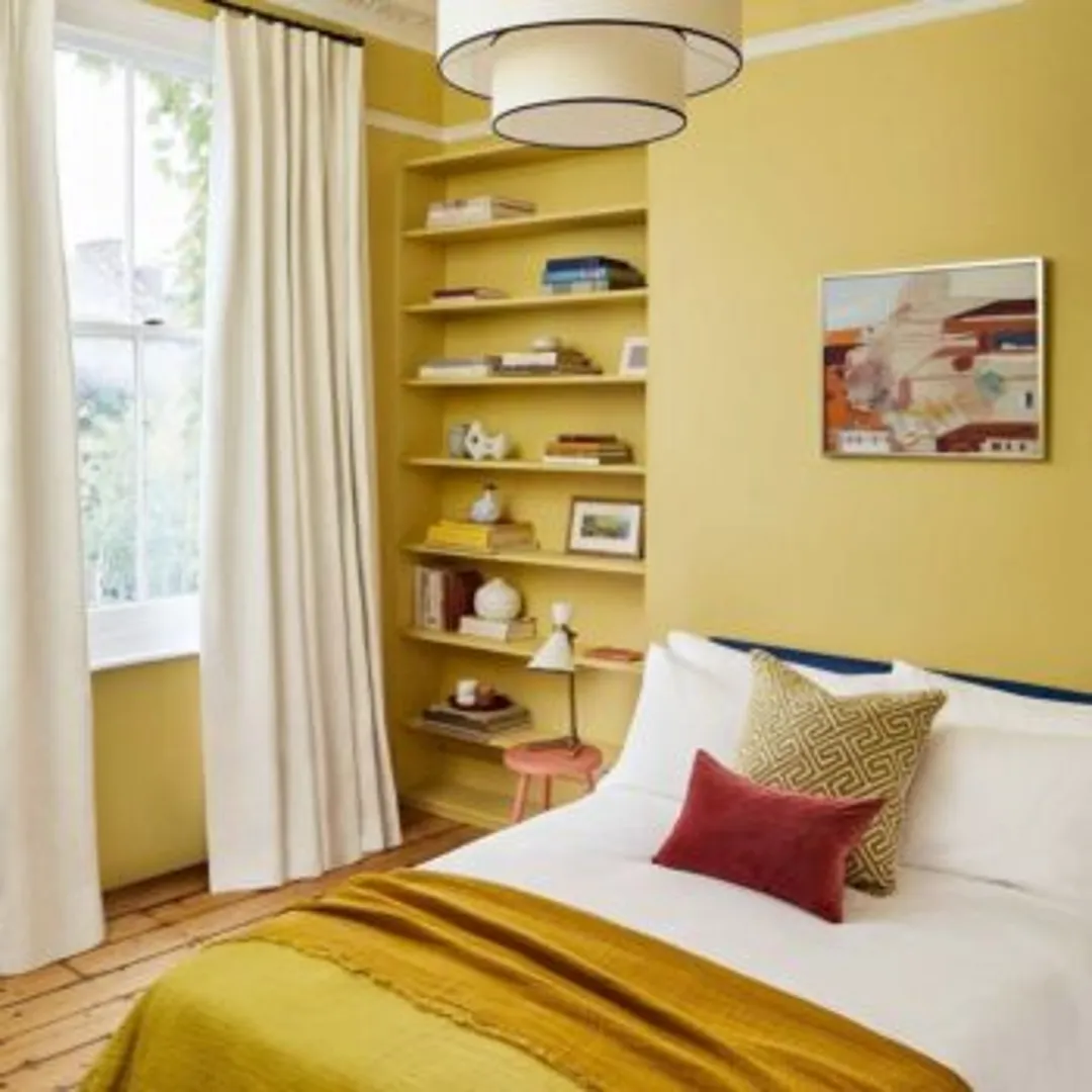 Идеи c акцентным цветом для желтой спальни