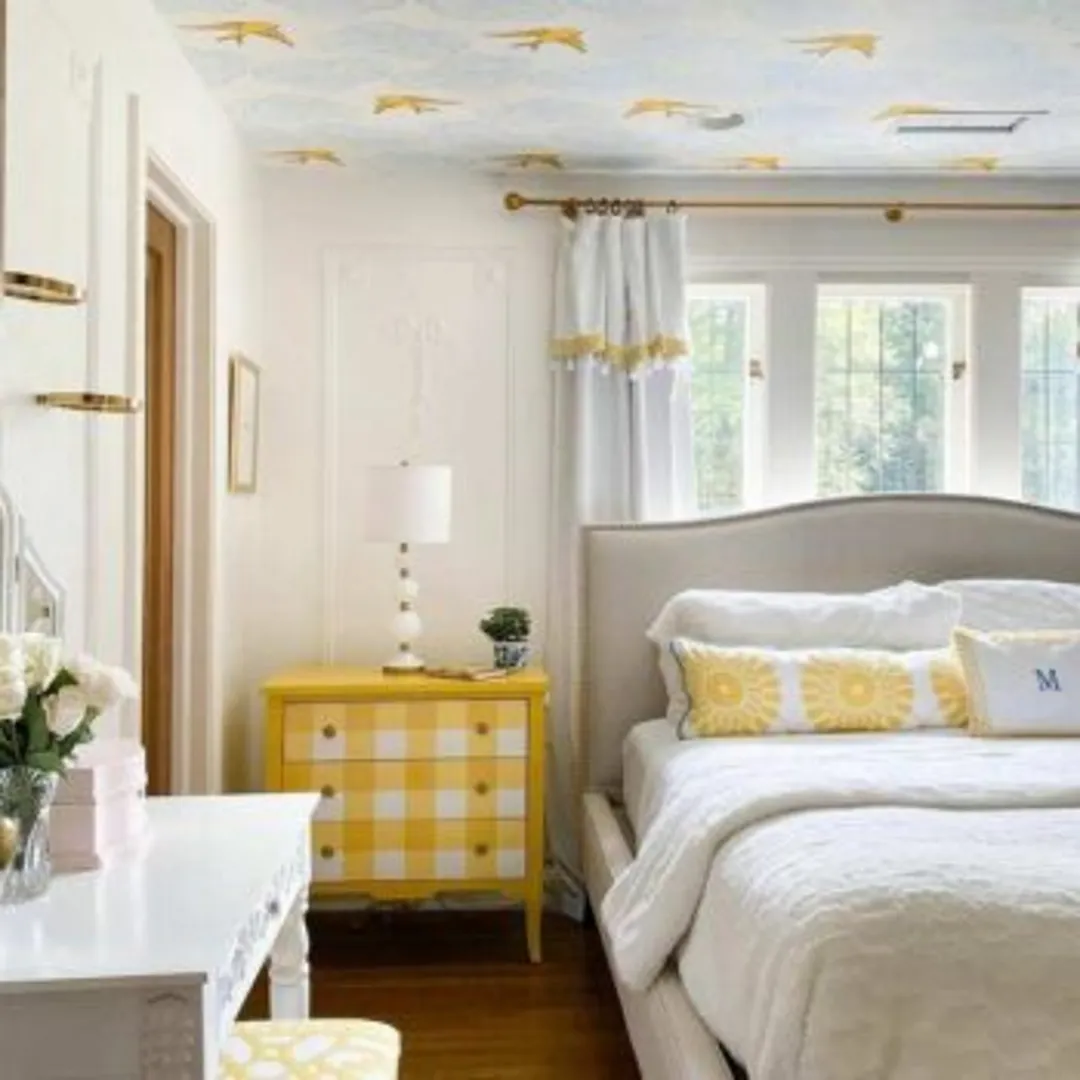 Потолки, окрашенные в смелый цвет, – это современная тенденция, внедряемая современными дизайнерами сегодня во всех комнатах дома. Можете воплотить этот тренд в своем доме, перекрасив потолок в спальне в желтый цвет. Представьте, как вы просыпаетесь утром, и первое, что вы видите, – это яркий желтый оттенок. Вид, несомненно, зарядит вас бодрой энергией в самом начале дня.