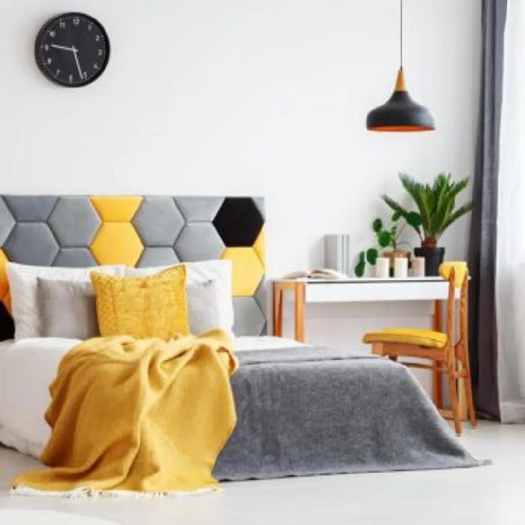 Для современного дизайна спальни сочетайте желтый с нейтральными цветами, такими как серый, коричневый или хаки. Для молодежного образа попробуйте комбинацию желтого с такими цветами, как пурпурный, королевский синий или зеленый.