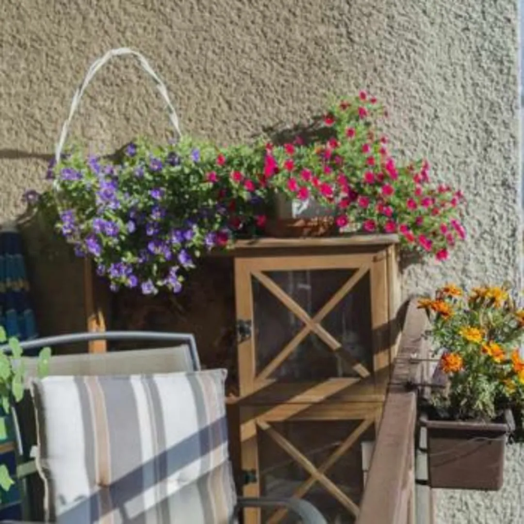 Если пространство ограничено, выберите вытянутые, многоярусные или подвесные кашпо, чтобы максимально использовать доступную площадь в квадратных метрах. Не забудьте добавить цветочной интриги в балконную лестницу или другие архитектурные элементы.