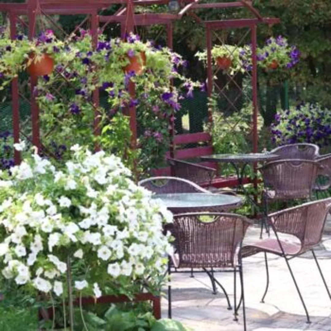 Если ваш внутренний дворик имеет беседку, решетку, или соединяется с беседкой, не тратьте это вертикальное пространство. Повесьте растения в горшках или приучите свою любимую цветущую лозу для распределения немного цвета над головой.