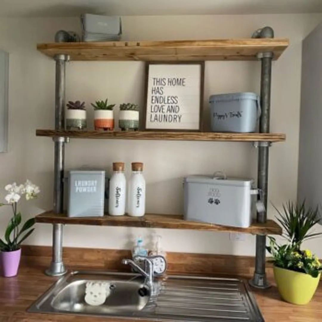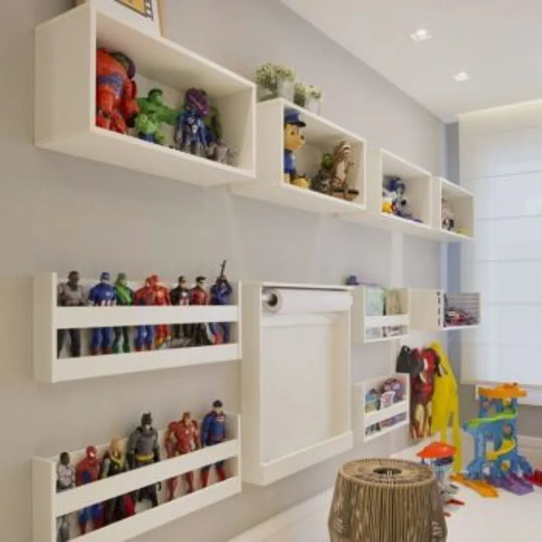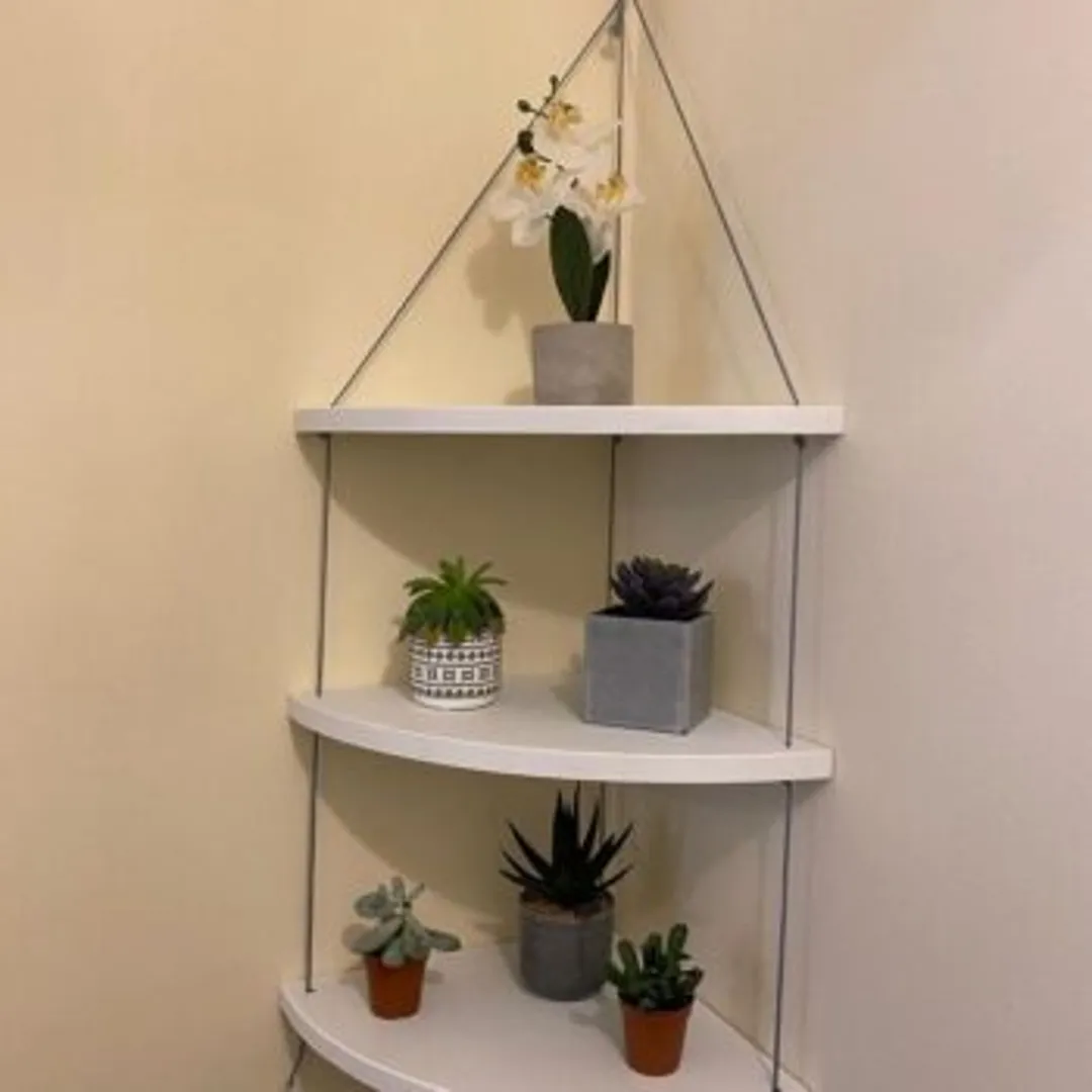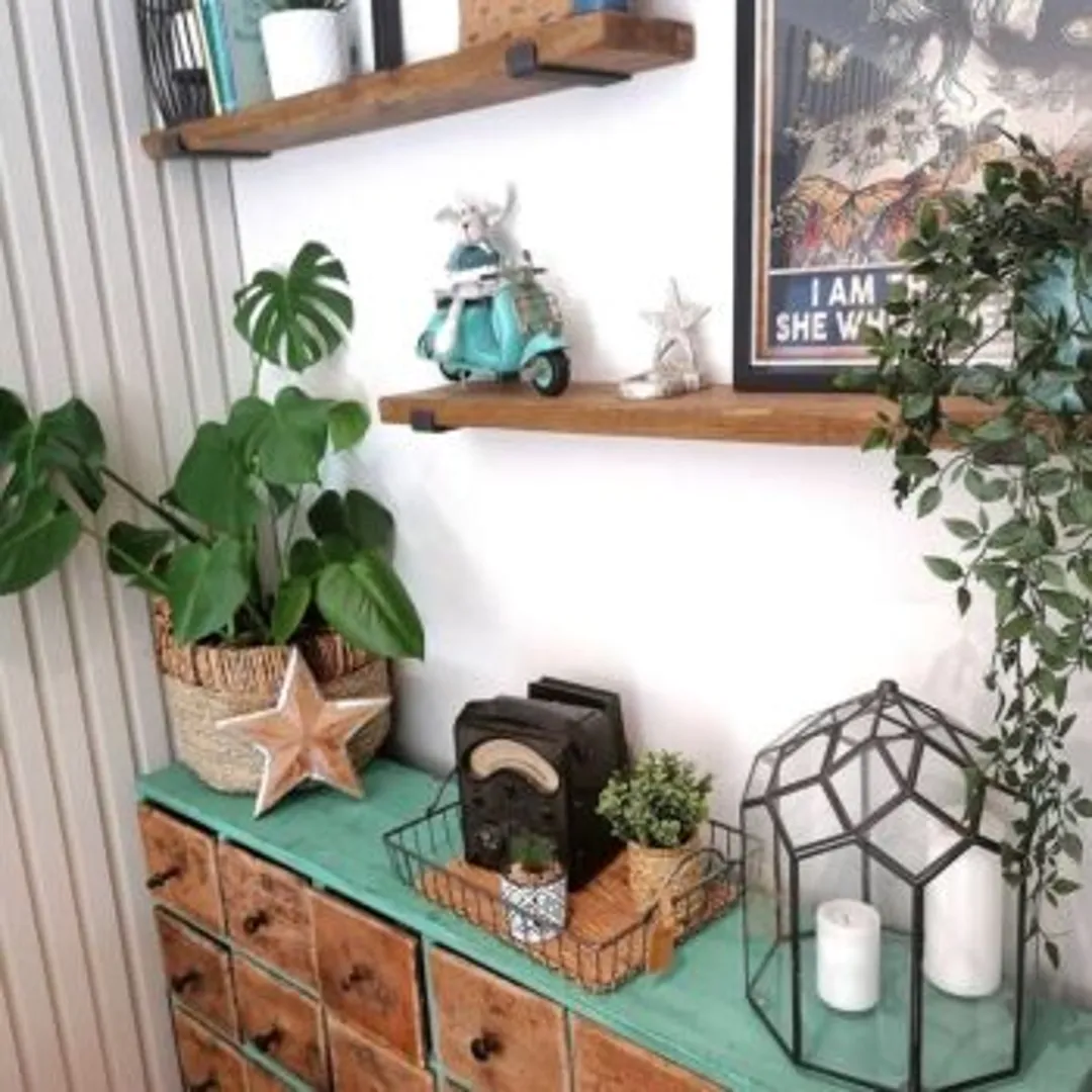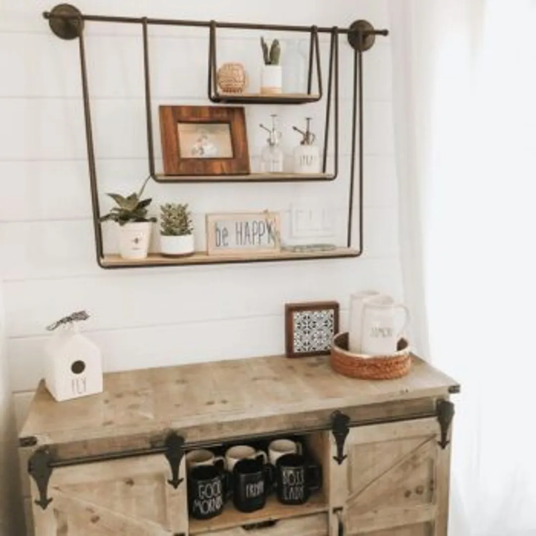 Если ваши запросы более декоративны, чем функциональны, подумайте о подвесных полках. Только обязательно учитывайте весовые ограничения, выбирая предметы, которые будете расставлять.