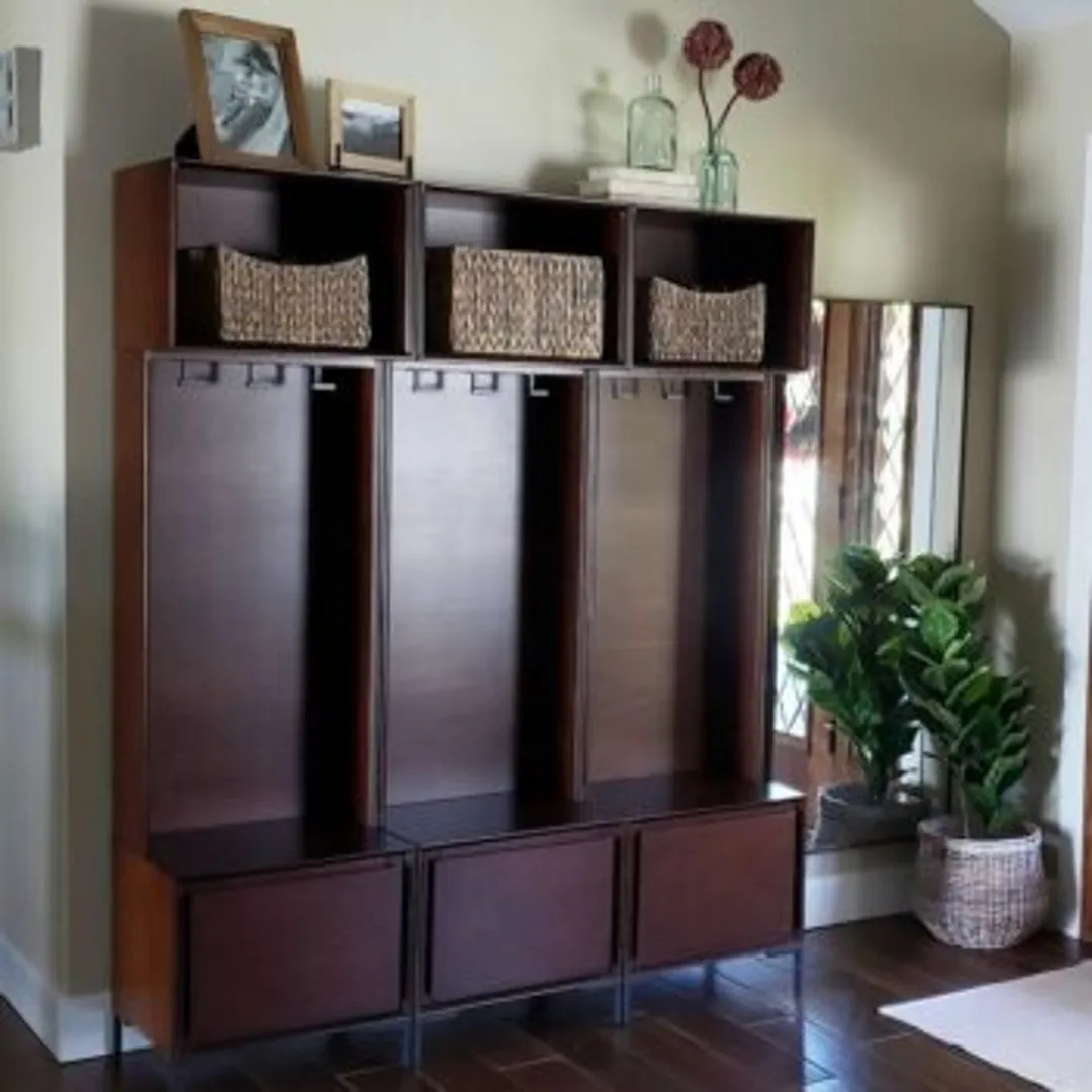 Объединение стеллажей со шкафами – легкий, компактный способ увеличить возможности для хранения вещей в доме. Есть множество мест, от винного погреба до развлекательного центра, где требуется более, чем только один тип хранения.