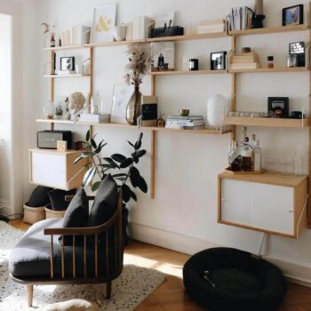 Настенные стеллажи входят во все стили. Плавающие полки со скрытым креплением выглядят как часть стены. Или можно выбрать вариант с декоративным креплением, гармонирующим с остальным декором помещения.