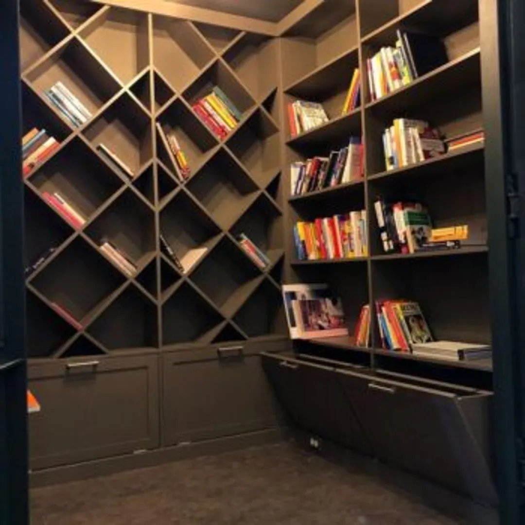 Открытые подвесные крепления – еще один замечательный элемент дизайна, которые нужно учитывать при покупке новой полки. Еще можно установить освещение перед стеллажами для необычного поворота в арт-декоре.