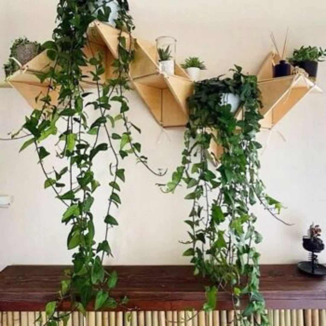 Подвесные полки геометрической формы – одна из тенденций, пришедших из бохо-стиля. Найти круглые, квадратные, треугольные полки не трудно. Но можно выбрать полку в форме полумесяца, овала или пчелиных сотов. В любом случае это будет одновременно украшением стены и способом хранения.