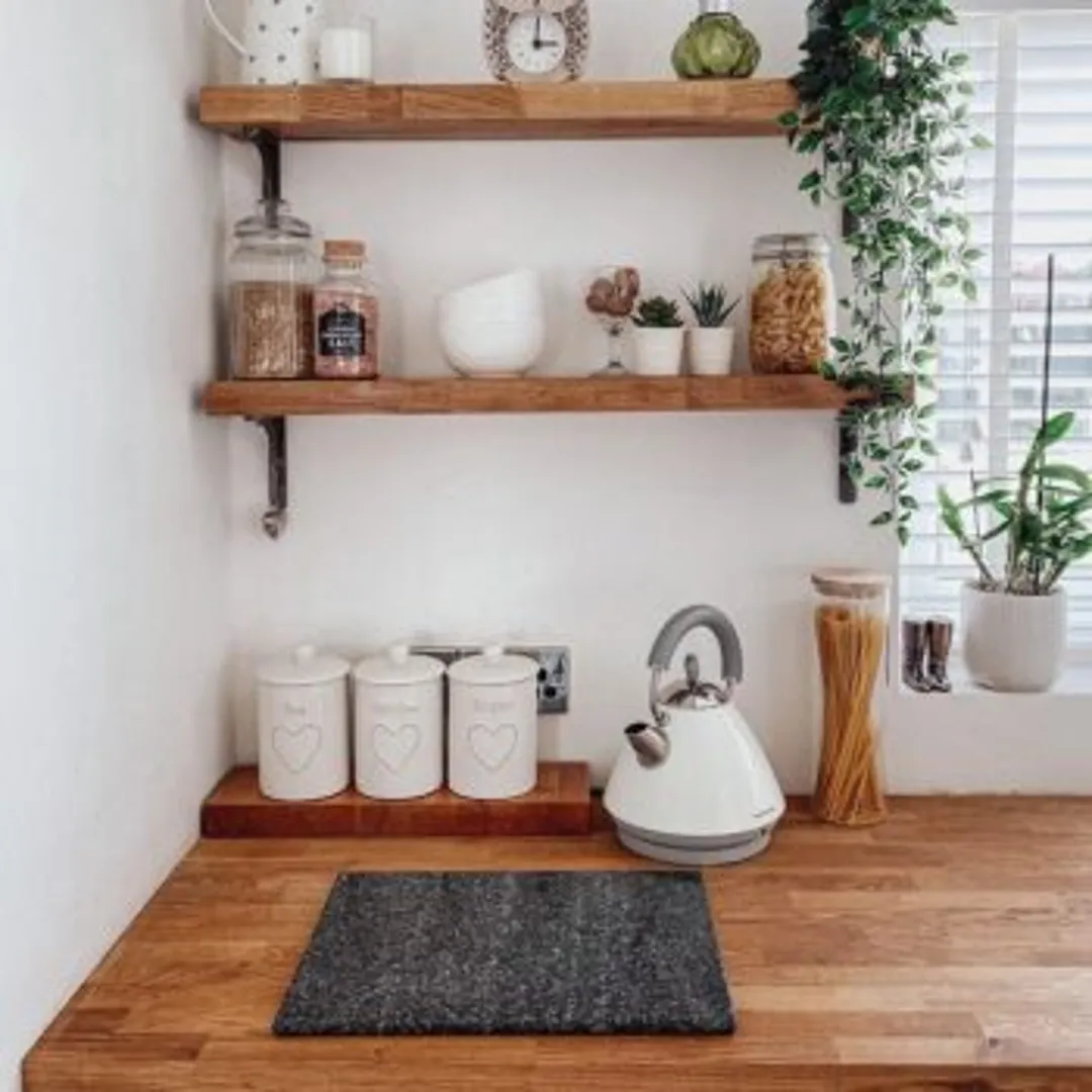 Кухонные полки предназначены не только для крупных предметов. Установите под шкафами полочку для ваших любимых специй и кухонных принадлежностей.