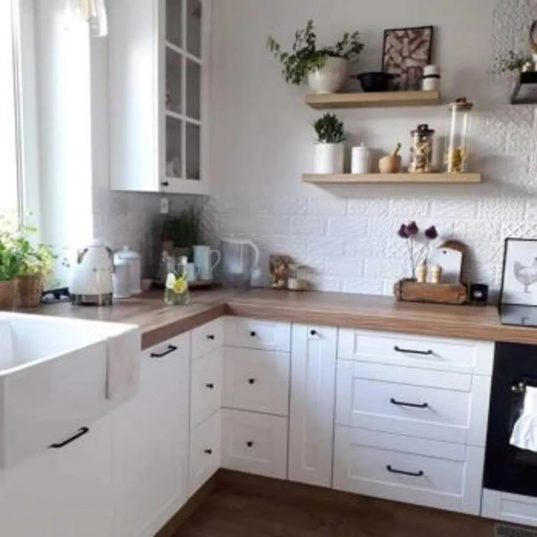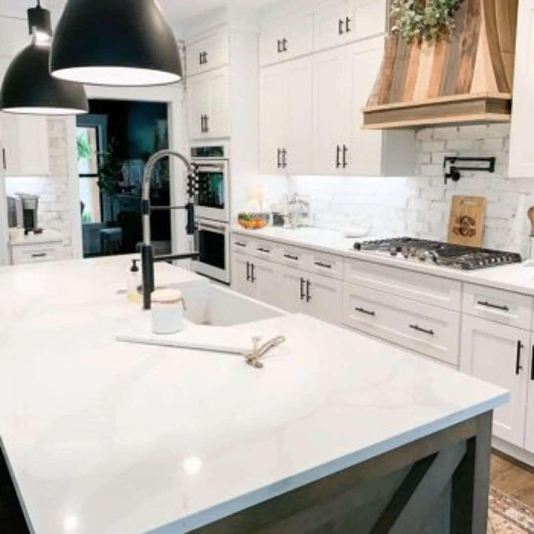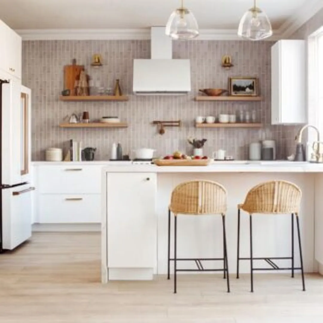 Если вам определенно нравится белая кухня, вам понадобятся белые шкафы, прилавки и фартук. Однако, как и в любой полностью белой комнате, вам нужно добавить текстуру и глубину, в противном случае, пространство сливается и превращается в слепящую белую стену. Ваш фартук – идеальное место для добавления визуального интереса.