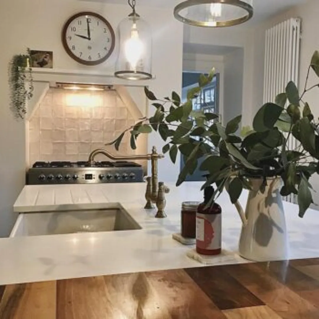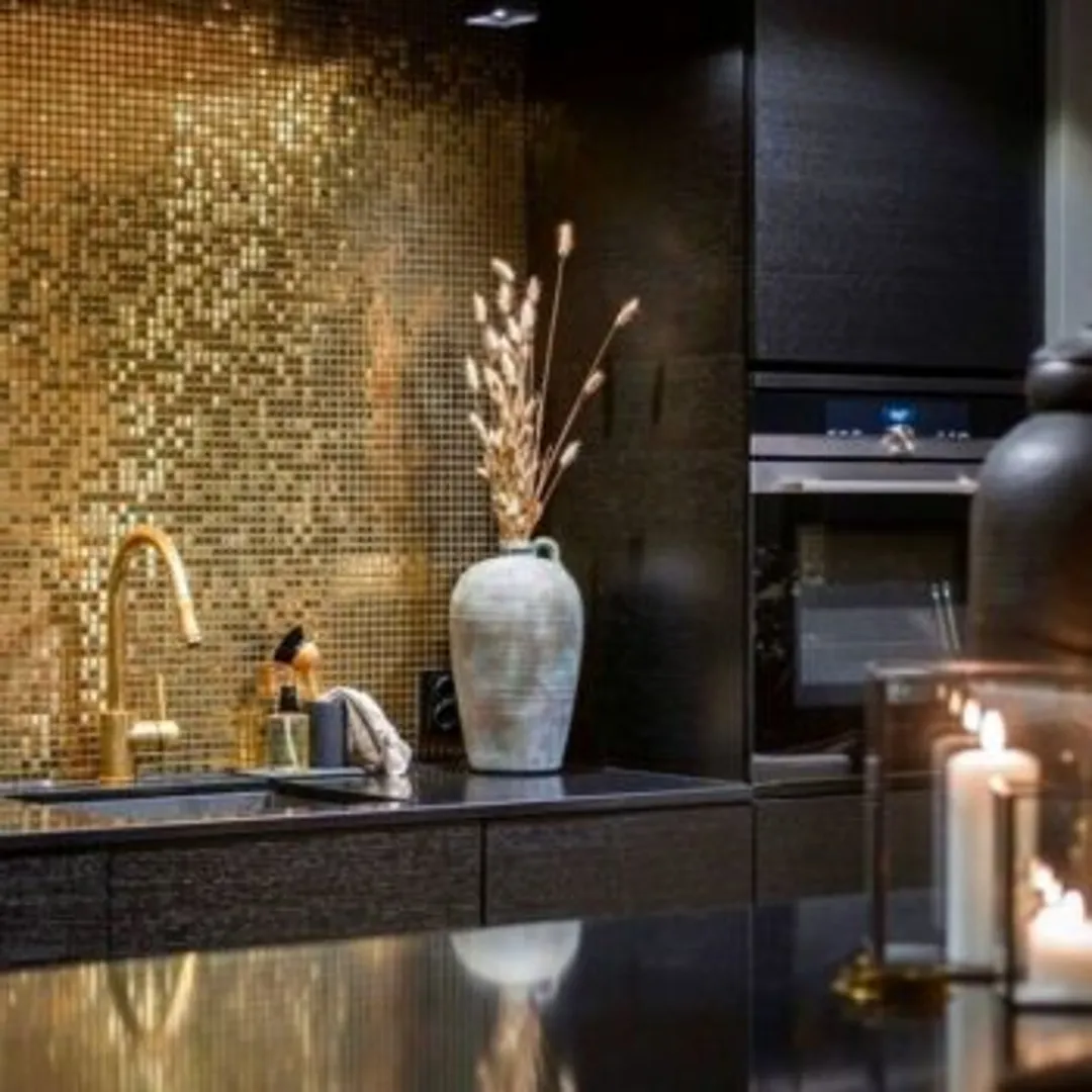 Если вы в поисках чего-то особенного, почему бы не попробовать розовый металл? Металлическая отделка из розового золота сформирует общую розовую гамму, но не слишком интенсивную и угнетающую. Или выберите плитку насыщенного, яркого и пурпурного цвета, придающей помещениям богемный вид. Этот более темный оттенок сымитирует ощущение красного, но он не будет слишком агрессивным. Он идеально подходит для кухни, так как способен вызывать чувство голода.