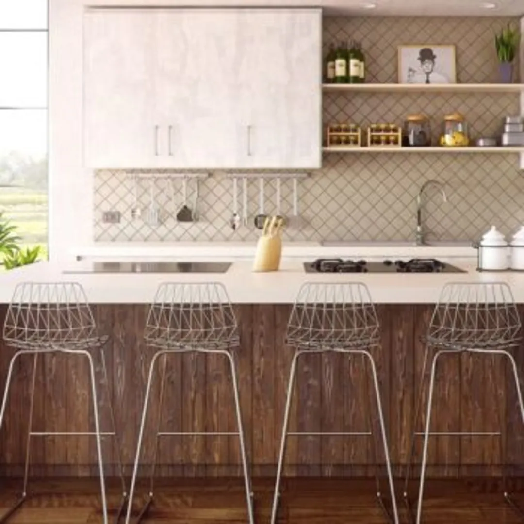 Используйте белую плитку меньшего размера и сформируйте текстуру с выбранными вами узором и линиями затирки между ними. Другой вариант – выберите плитку для кухонного фартука с фактурным рисунком на самой плитке. Это может быть трехмерная квадратная плитка, создающая ощущение объема.