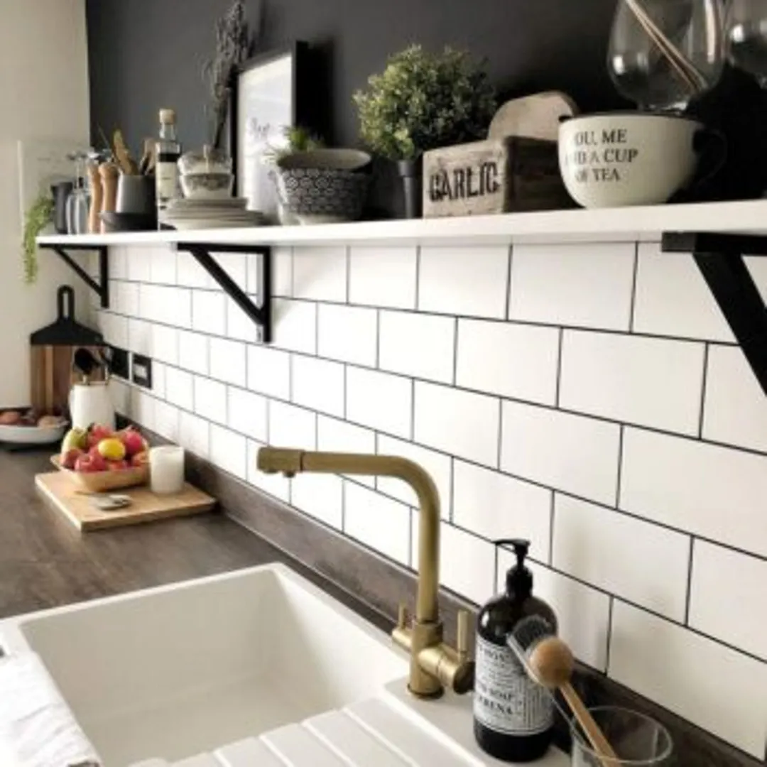 Классический подход заключается в использовании белых прямоугольных плиток и размещении их продольно по горизонтали. Но также можно отклониться от этого решения, чтобы придать кухне индивидуальный вид. Создайте иллюзию более высоких стен, разместив их вертикально до потолка. Другой вариант – выложить их по диагонали, в елочку или шеврон. Вы также можете выбрать другой цвет кафеля и чередовать его с основным тоном.