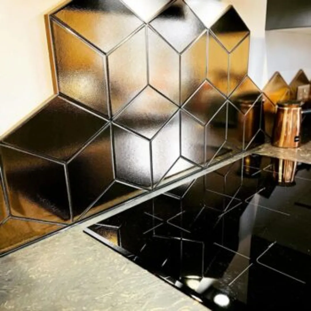 Для получения гладкого, обтекаемого и современного вида возьмите большую по размерам стеклянную плитку. Конечный результат с ними будет выглядеть, как единая плоскость с минимальным количеством швов. Для создания многомерного образа выберите меньшего размера, например стеклянную мозаику. Они могут иметь скос, отражающий свет и создающий текстуру. Для более красочного вида поэкспериментируйте с цветным стеклом.