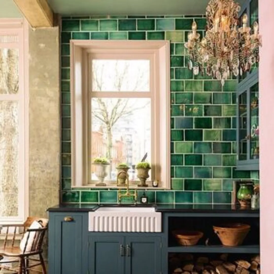 Зеленый — это цвет жизни и процветания, поэтому он идеально подойдет для вашей кухни. Если у вас есть шкафы, и вы ищете более простой способ добавить зеленый цвет, почему бы не сделать фартук зеленым? Этот естественный и землистый цвет идеально подходит для богемных и артистичных людей.