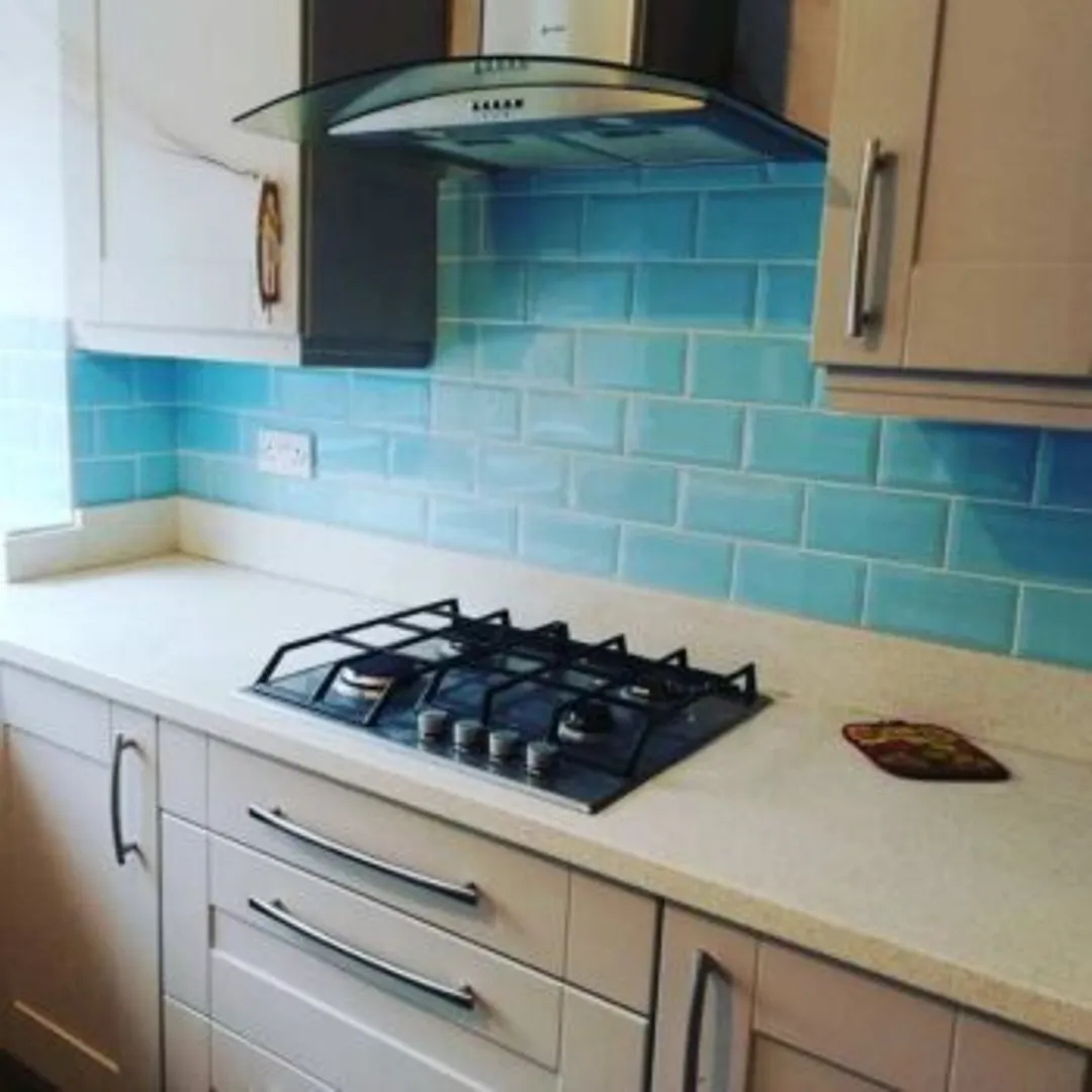 Стеклянная плитка создает ошеломляющую визуальную глубину и потрясающие световые эффекты отражения. Однако такой материал недолговечен и является ужасным выбором для других типичных применений плитки, например, для напольных покрытий. Но использование стеклянного кафеля для создания фартука – идеальное применение для уникально красивой полупрозрачной плитки.