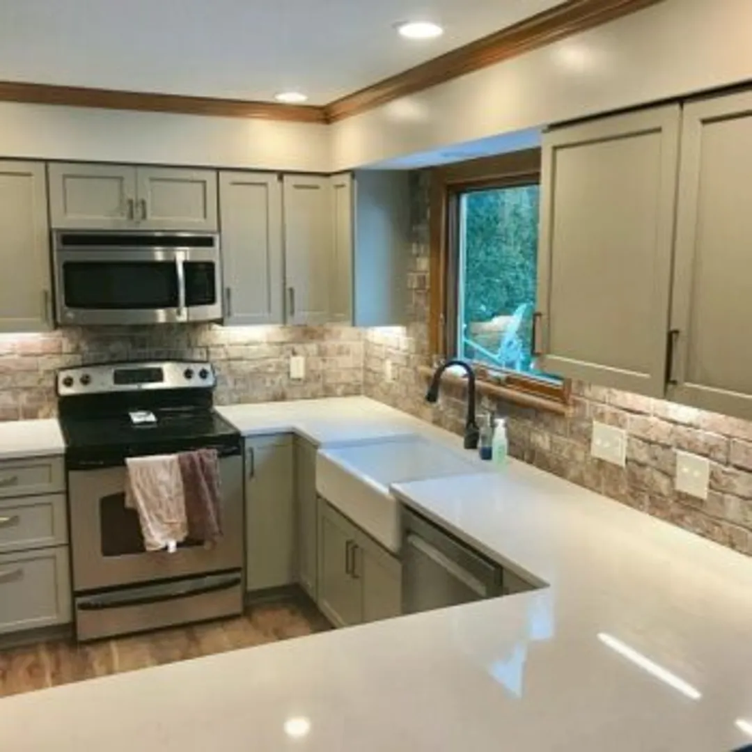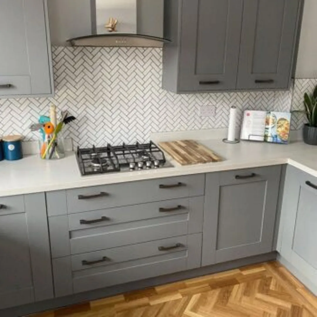 Если у вас роскошная кухня, обратите внимание на использование более дорогих материалов, таких как гранит или мрамор. Ищите тот, который имеет нужное количество прожилок и цветовых вариаций. Для деревенского или загородного образа используйте грубо обтесанный камень с необработанными краями различных оттенков серого. Современная или минималистичная кухня будет идеально смотреться с серой квадратной плиткой из керамического или стекловолоконного материала.
