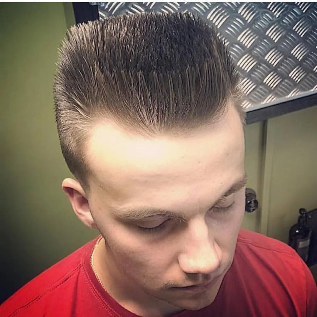 Эту стрижку предпочитают спортивные парни, а внимание на нее обратил рэпер Маклемор. По бокам и сзади стрижка «под ноль», а на макушке – короткие волосы, которые можно зачесать назад или сделать пробор на бок. Хуже всего, когда волосы волнистые. Она напоминает другие части мужского тела и просто ужасная стрижка, которую не должен терпеть ни один мужчина. Несмотря на приведенные факты, она все еще довольно популярна, и многим женщинам нравится ее вид. Почему – никто не знает.