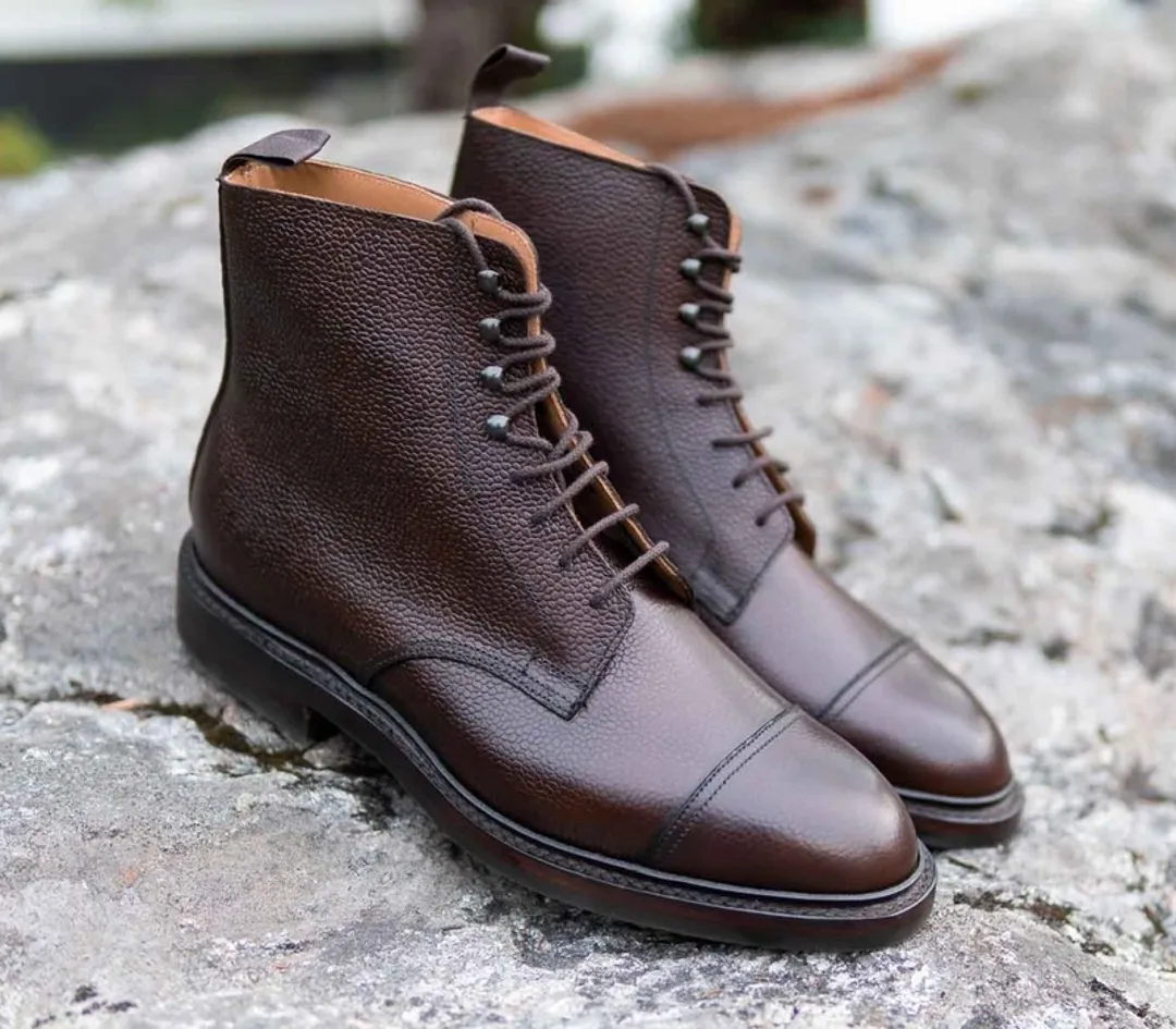 Для прогулок по городу, ботинки из кожи с зернистой поверхностью отлично сочетаются с шерстяными брюками с ворсом, но не стоит путать их со строгим вариантом категории «понедельник-пятница». Также они всегда будут шикарно смотреться с джинсами.