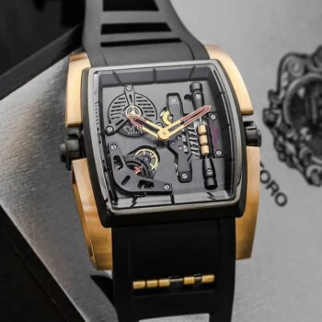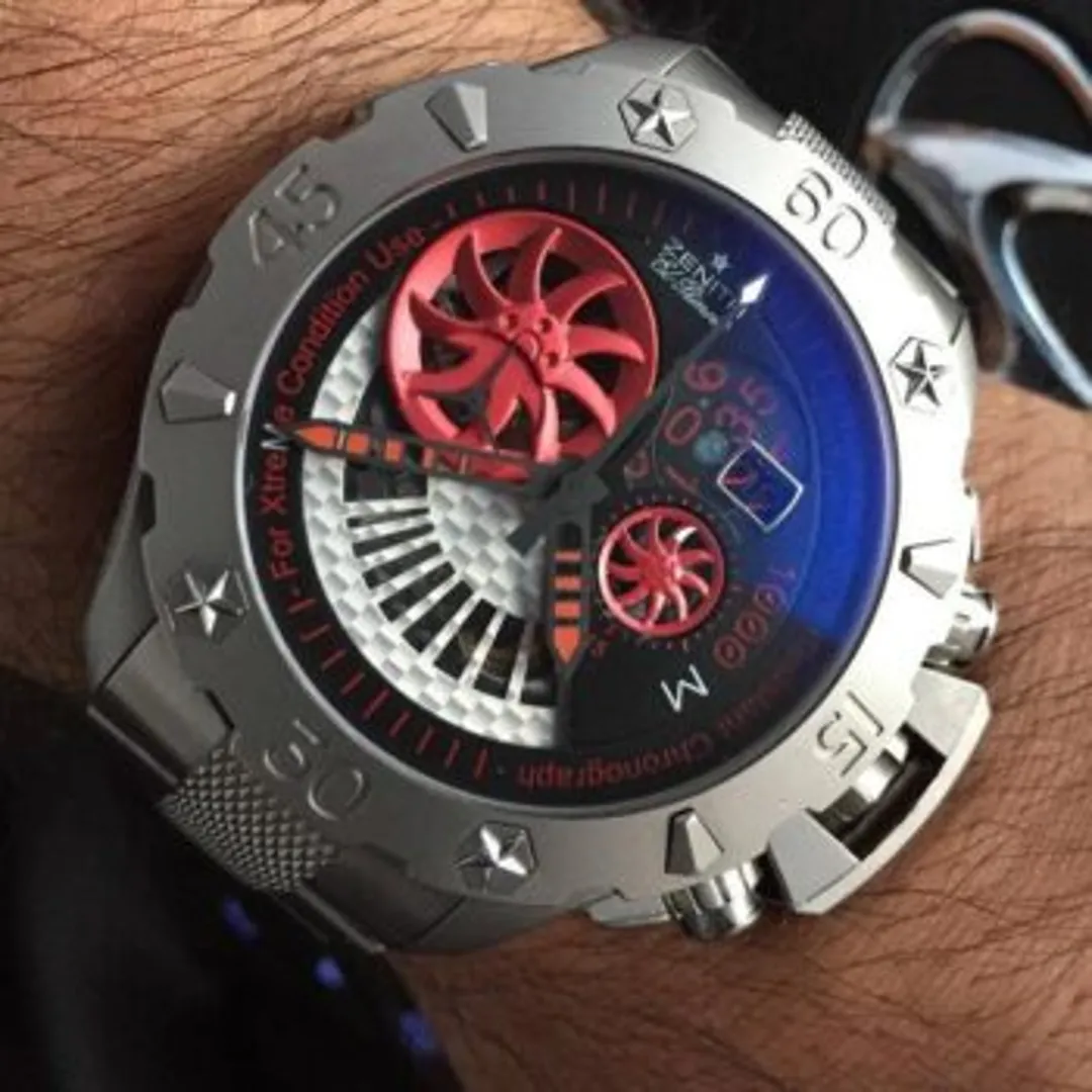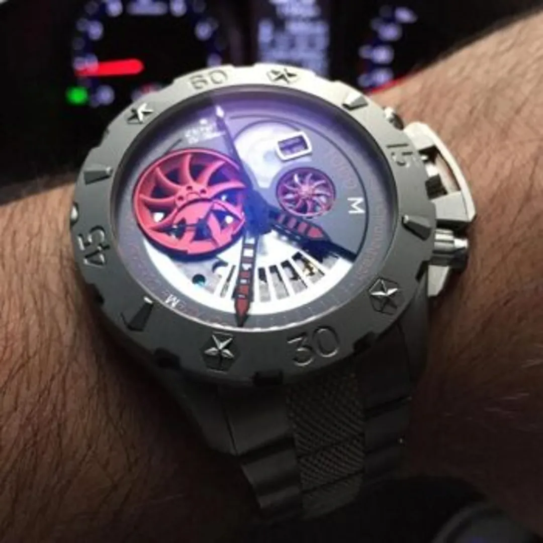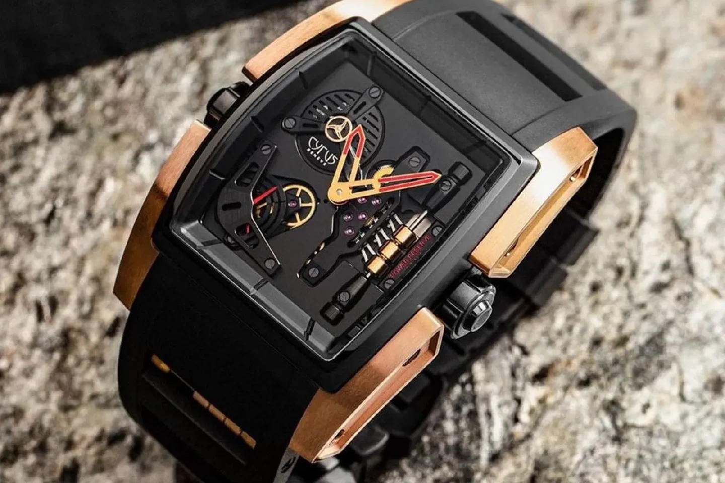 Титановый Kambys от Cyrus Watches предлагает модный, высокотехнологичный скелетонизированный дисплей. Красные акценты на циферблатах добавляют неожиданный всплеск цвета, резко контрастирующий на фоне титана и черных часов. Механика часов с ручным заводом представляет собой смесь современного и классического дизайна. В целом, Kambys – отличный выбор.