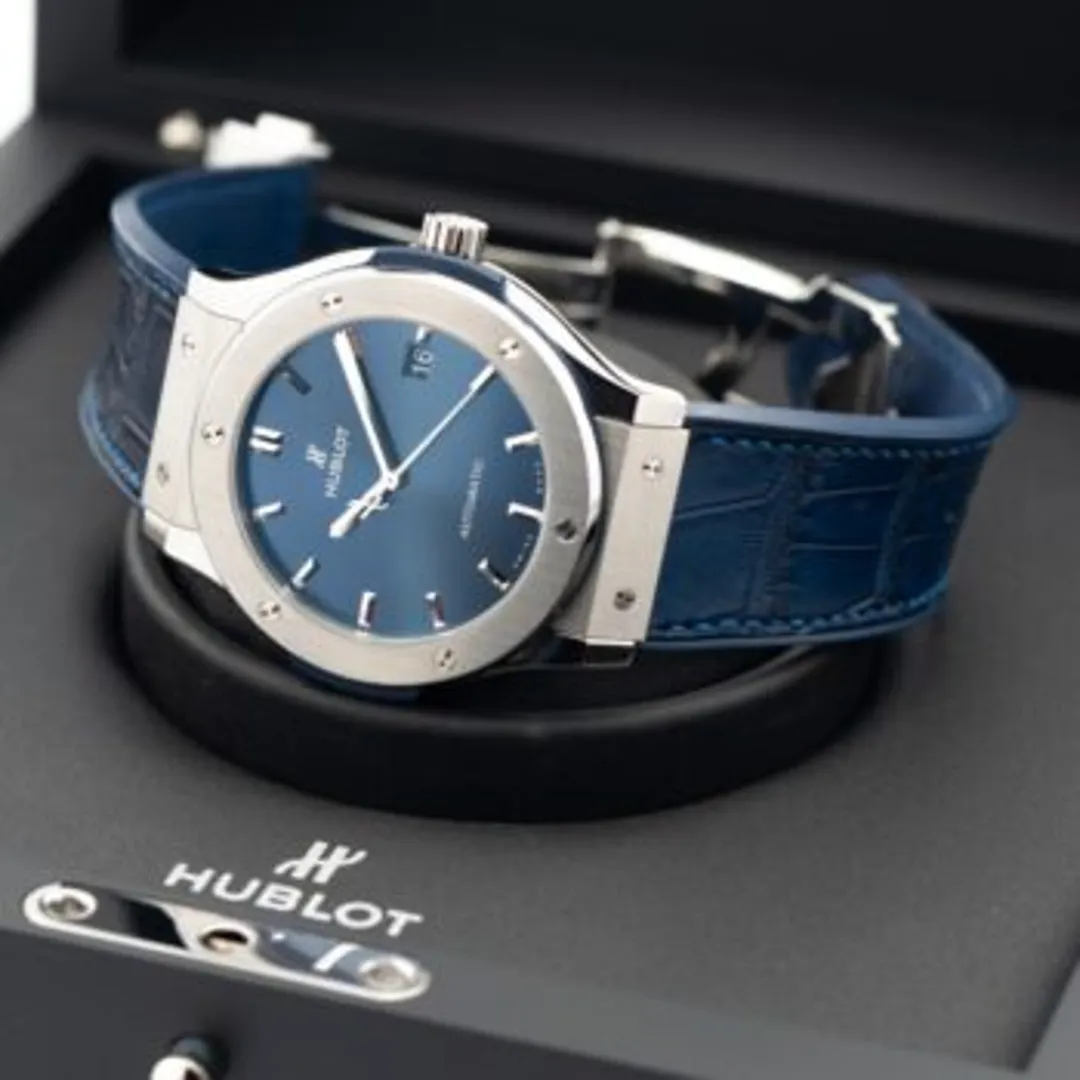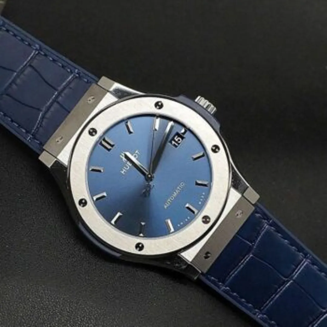 Для парня, нуждающегося в красивом повседневном наряде, эта стильная вещь швейцарского производства от Hublot сочетает в себе великолепный стиль и надежность. Синий атласный циферблат с полированными стрелками с родиевым покрытием добавляет роскошную цветовую палитру, прекрасно сочетающуюся с голубым каучуком и ремешком из кожи аллигатора. Они также водонепроницаемые до 50 метров.
