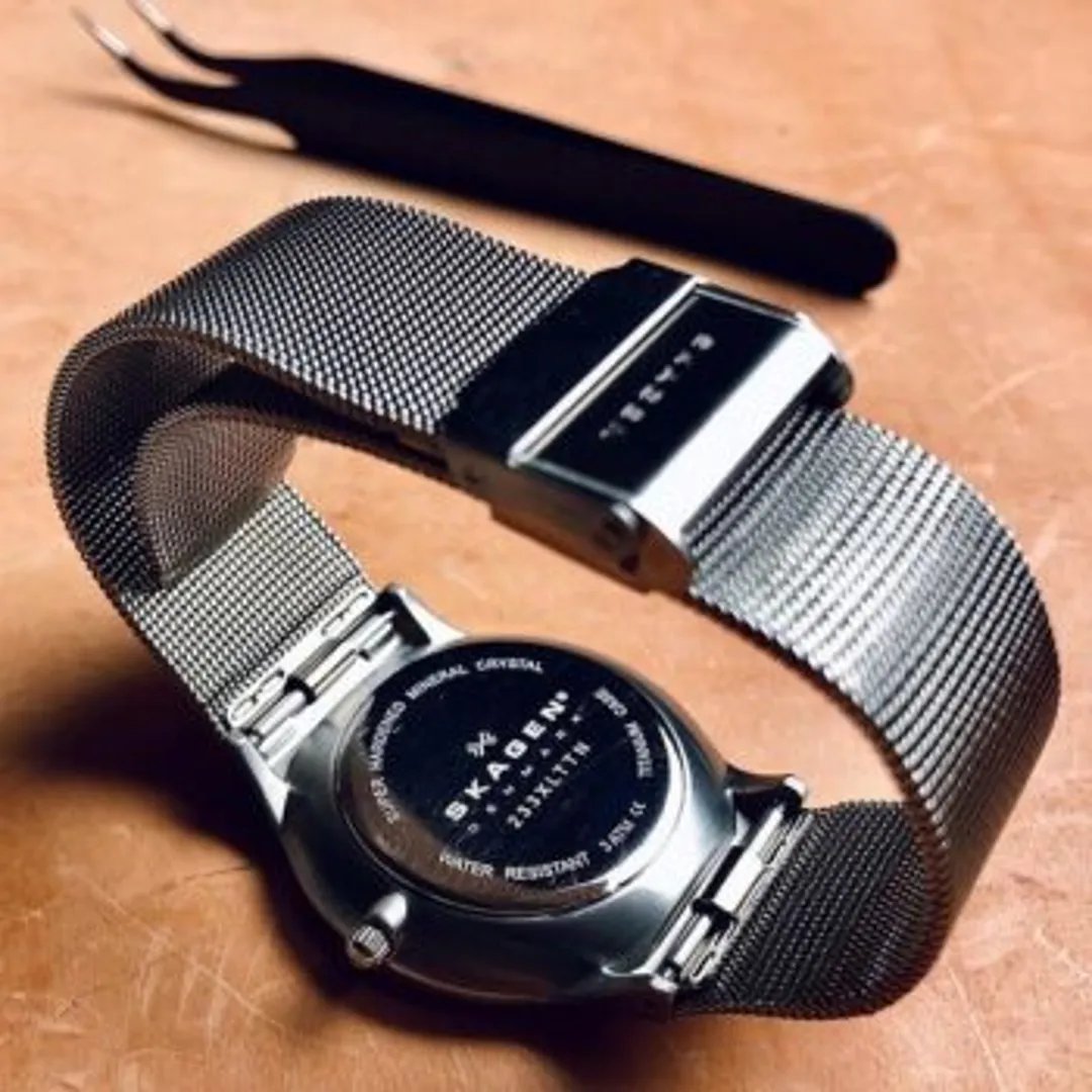 Элегантный футуристический дизайн от Skagen. Сетчатый ремешок, бронзовый циферблат и серебряные цифры предлагают уникальный современный взгляд на мужские титановые часы. Качественные детали в потрясающем дизайне Скагена делают их незаменимыми.