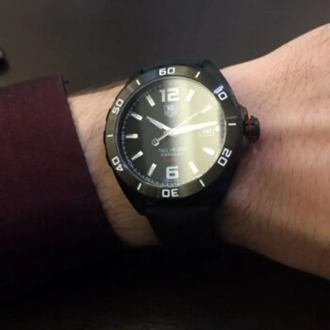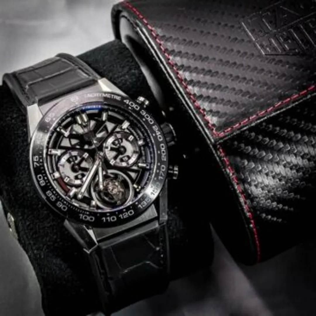 Спортивные, роскошные мужские часы из титана Tag Heuer отлично подходят для повседневного ношения. Монохромный дизайн «черный в черном» великолепно смотрится с белыми цифрами. Кроме того, оптимальная водонепроницаемость делает их пригодными для занятий водными видами спорта.