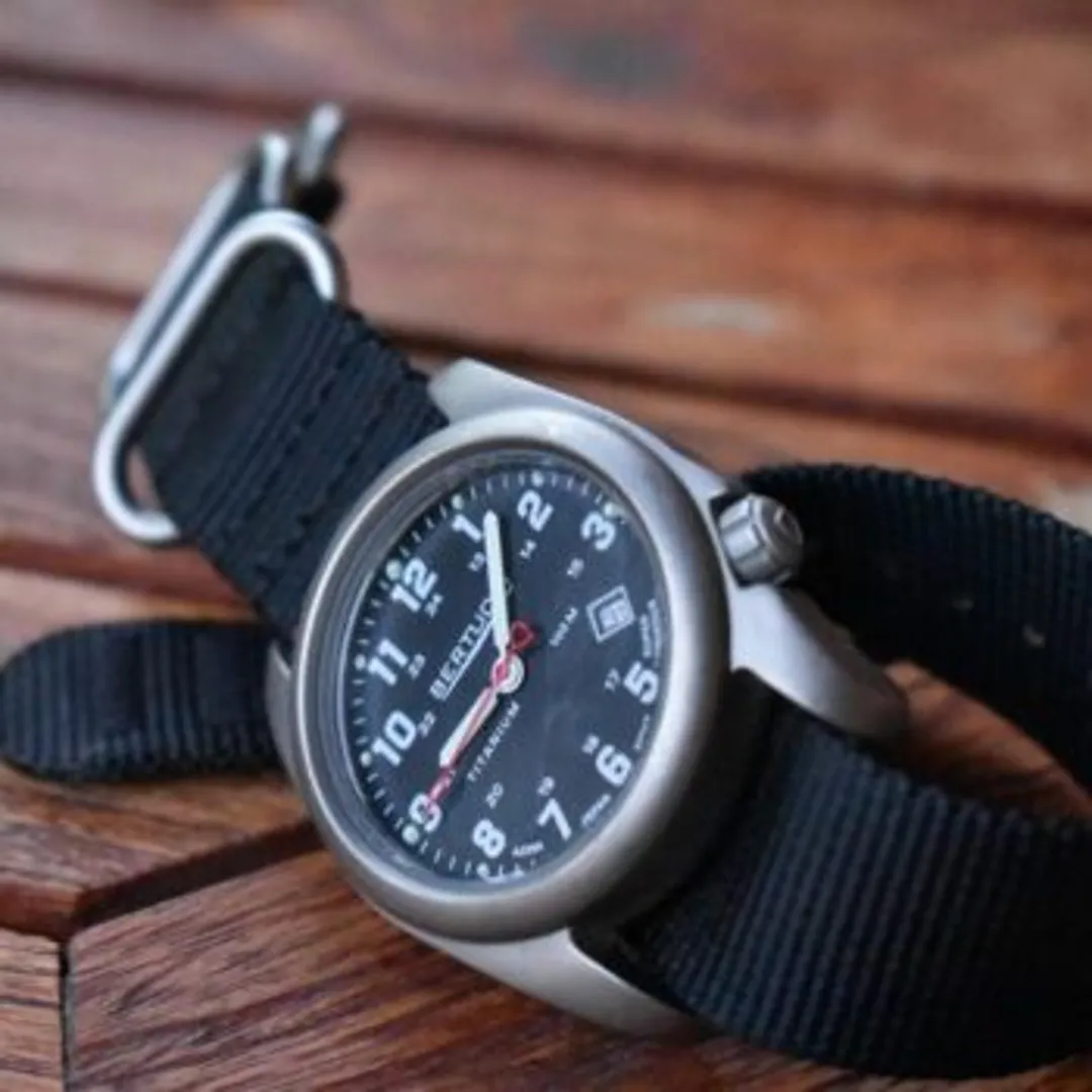 Современный взгляд на винтажные американские военные часы прошлого. С матово-черным циферблатом, они выглядят острыми и легко читаются. От запатентованного массивного титанового корпуса Unibody до эргономичной заводной головки Active Comfort возле «4 часа» – Bertucci создали часы из титана с исключительной прочностью и комфортом.