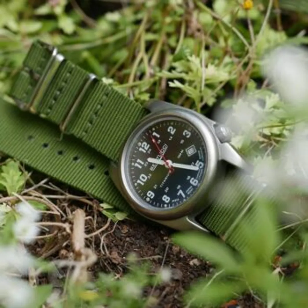 Упрощенный дизайн делает эти мужские титановые часы в немецком военном стиле идеальным аксессуаром. Они были разработаны для немецких пехотинцев, ценивших необходимость высокой точности. Прочное сапфировое стекло с антибликовым покрытием обеспечивает защиту от царапин. Часы обеспечивают водонепроницаемость до 200 метров и работают без батарейки.