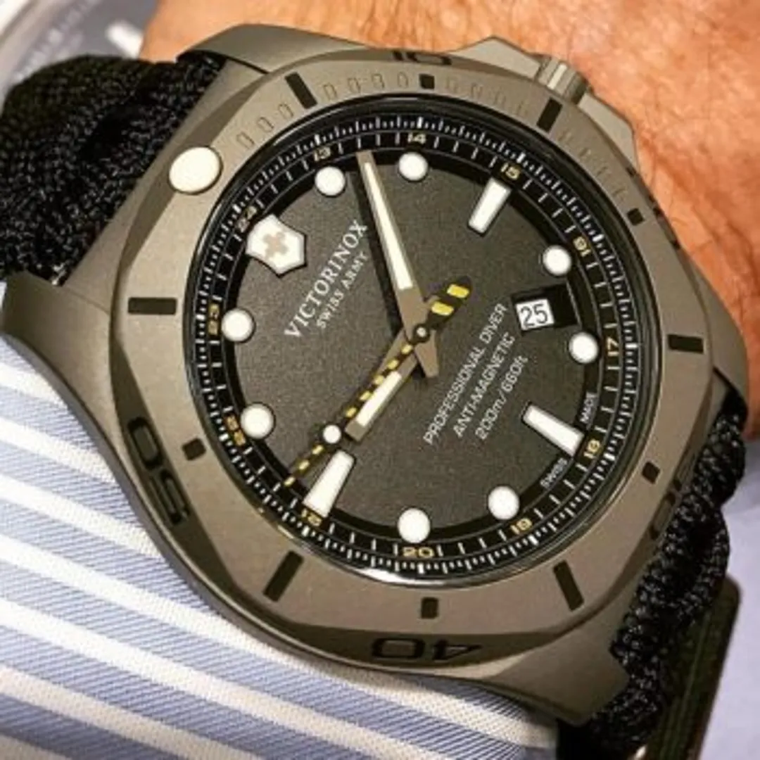Модель Swiss Army «Швейцарская армия» гарантирует высочайшее качество и надежность в этом великолепном продукте. Продукт прошел строгие испытания для обеспечения оптимальной прочности, способной выдержать нагрузку даже 64-тонного танка. Благодаря исключительной водонепроницаемости вы можете использовать эти титановые мужские часы даже во время подводного плавания!
