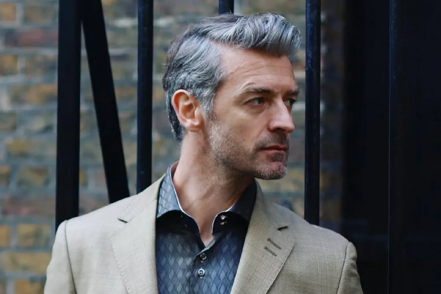 Например, зачесанные назад седые волосы — это потрясающая стрижка, с которой можно поэкспериментировать. Он предлагает образу мужчины среднего возраста острую и утонченную эстетику. Привлекательным в этом образе является сочетание зачесанных седых прядей и красивого Андерката.