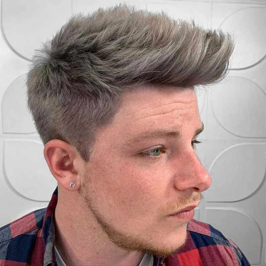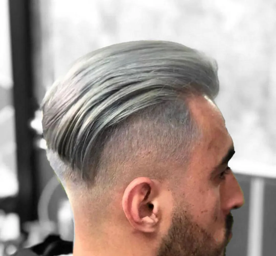 Пышная прическа может стать отличным стилем для мужчин с седыми или серебристыми волосами. Помпадур, который существует уже несколько десятилетий, делается с длинными волосами на макушке и фейдом по бокам.