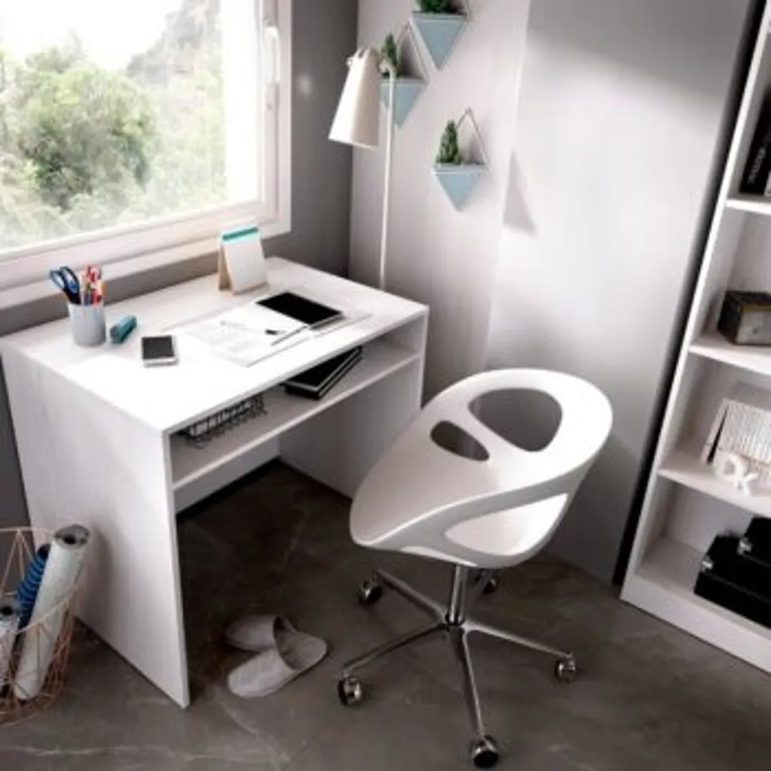 Ваш выбор рабочего стола – это решение, направленное на экономию пространства. Поищите способ уменьшить офисную зону в период времени, когда она не используется. Например, офисный стул может неплохо умещаться под рабочим столом.